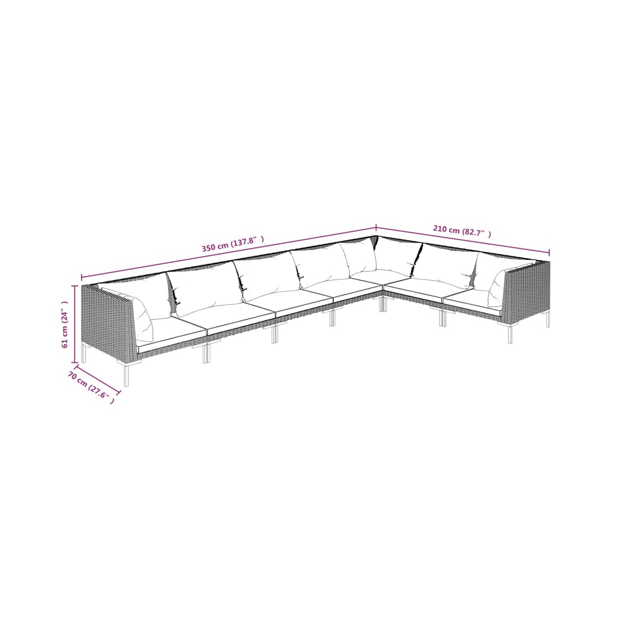 ¡Relájate y disfruta del espacio al aire libre de tu casa con este clásico juego de muebles para jardín! Estructura robusta: Con una estructura de acero con recubrimiento en polvo, el juego de muebles de patio es robusto y duradero. Construcción ligera: La construcción ligera hace que el juego de sofás sea fácil de mover.Material de primera calidad: Hecho de ratán PE semicircular, este juego de muebles para exteriores es resistente a la intemperie y al agua, fácil de limpiar y mantener. Cómodos cojines y almohadas: Los cojines y las almohadas acolchados gruesos y extraíbles brindan una comodidad óptima para que te sientes al aire libre. Nota:Recomendamos cubrir el conjunto de jardín en caso de lluvia, nieve y heladas para que dure más tiempo. Además, te recomendamos limpiarlo regularmente para alargar la vida de los muebles de exterior. No lo dejes al aire libre sin protección innecesariamente.Limpieza: Usa una solución de jabón suaveAlmacenamiento: Si es posible, guárdala en un lugar fresco y seco en el interior. Si el producto se almacena en el exterior, protégelo con una cubierta impermeable. Limpia y seca el exceso de agua o nieve de las superficies planas después de una lluvia o nevada. Permite la ventilación para evitar daños relacionados con la humedad.