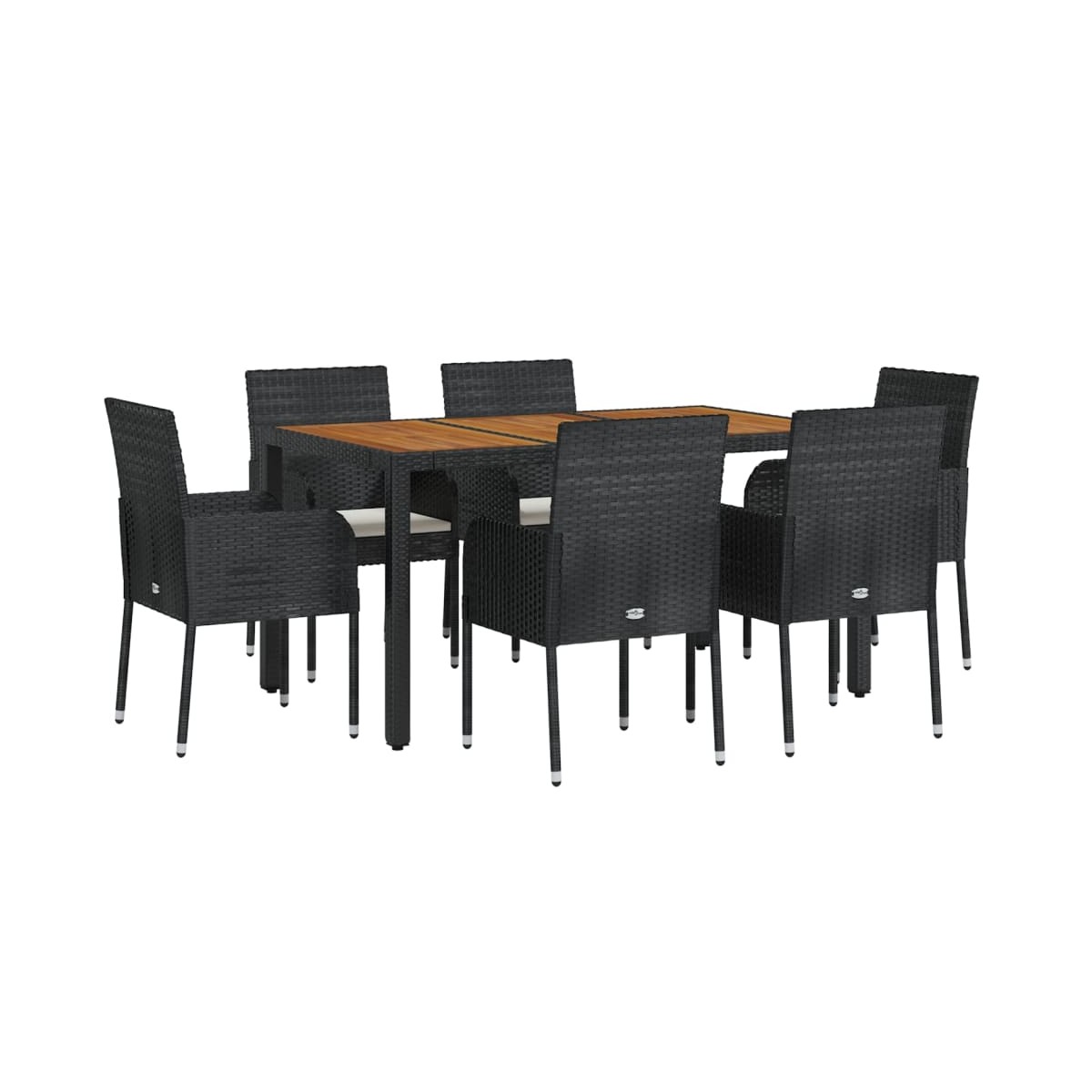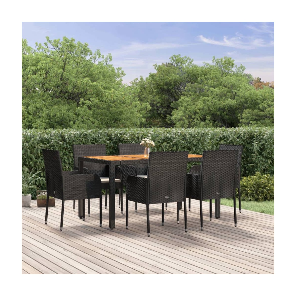 Este moderno juego de comedor de jardín, con un diseño elegante y contemporáneo, es una excelente opción para comer o relajarse en el jardín. Material resistente a la intemperie: El ratán PE, también conocido como ratán sintético, es resistente a la intemperie y fácil de limpiar. La parte exterior se mantiene hermosa durante mucho tiempo. Ofrece una gran calidad, comodidad y aspecto estético.Estructura robusta: Las estructuras de acero con recubrimiento en polvo hacen que el juego de comedor para exterior sea resistente y estable para usar a diario al aire libre.Superficie práctica: La superficie de madera maciza de acacia es perfecta para colocar bebidas, comida y adornos. Es bonita y fácil de limpiar.Diseño modular: El juego de comedor para patio es flexible y fácil de mover, por lo que puedes combinarlo con otros segmentos modulares de la web para crear tus propias configuraciones personales de muebles de comedor para jardín.Cómodo asiento: El respaldo añade un plus de comodidad al asiento de la silla de jardín. Además, los cojines gruesos y acolchados proporcionan comodidad al asiento. Información útil:Para facilitar al máximo el montaje, cada producto se entrega con un manual. Nota:Para asegurarte de que tus muebles de exterior se mantengan hermosos, recomendamos protegerlos con una funda impermeable.