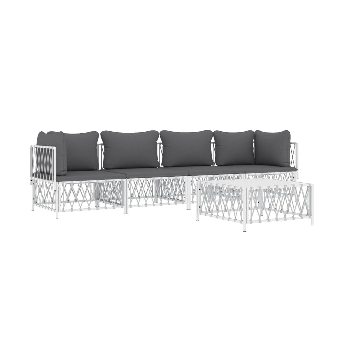 ¡Disfruta de una taza de café o té en el espacio al aire libre de la casa con este cómodo juego de muebles de jardín! Material duradero: La tela tejida es cualquier textil formado por tejido. Se trata de un tipo de tela muy útil que usamos muy a menudo en nuestro día a día debido a su durabilidad y versatilidad.Estructura robusta: La estructura de acero con recubrimiento en polvo hace que el juego de sofás sea resistente y estable para usar a diario al aire libre.Cómodo asiento: El respaldo aporta un plus de comodidad al sofá de exterior. Además, los cojines gruesos y acolchados proporcionan comodidad al asiento.Diseño modular: El juego de sofás es flexible y fácil de mover, por lo que puedes combinarlo con otros segmentos modulares de la tienda web para crear tus propias configuraciones personales de juegos de muebles para jardín. Nota:Para asegurarte de que tus muebles de exterior se mantengan hermosos, recomendamos protegerlos con una funda impermeable.