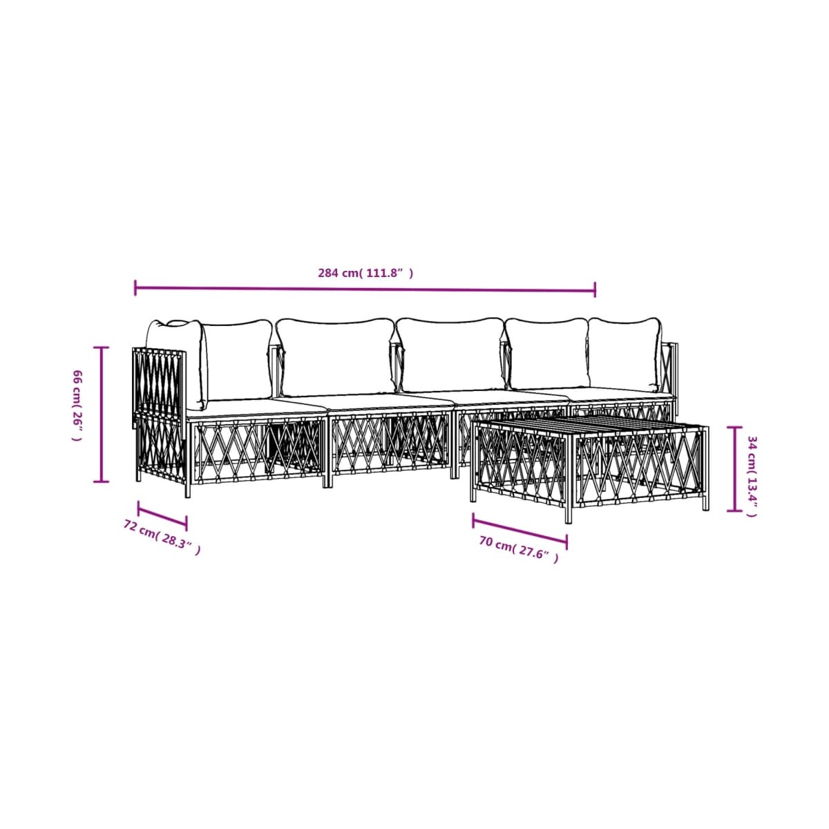 - Dimensiones: 70 x 70 x 34 cm (ancho x profundo x alto)