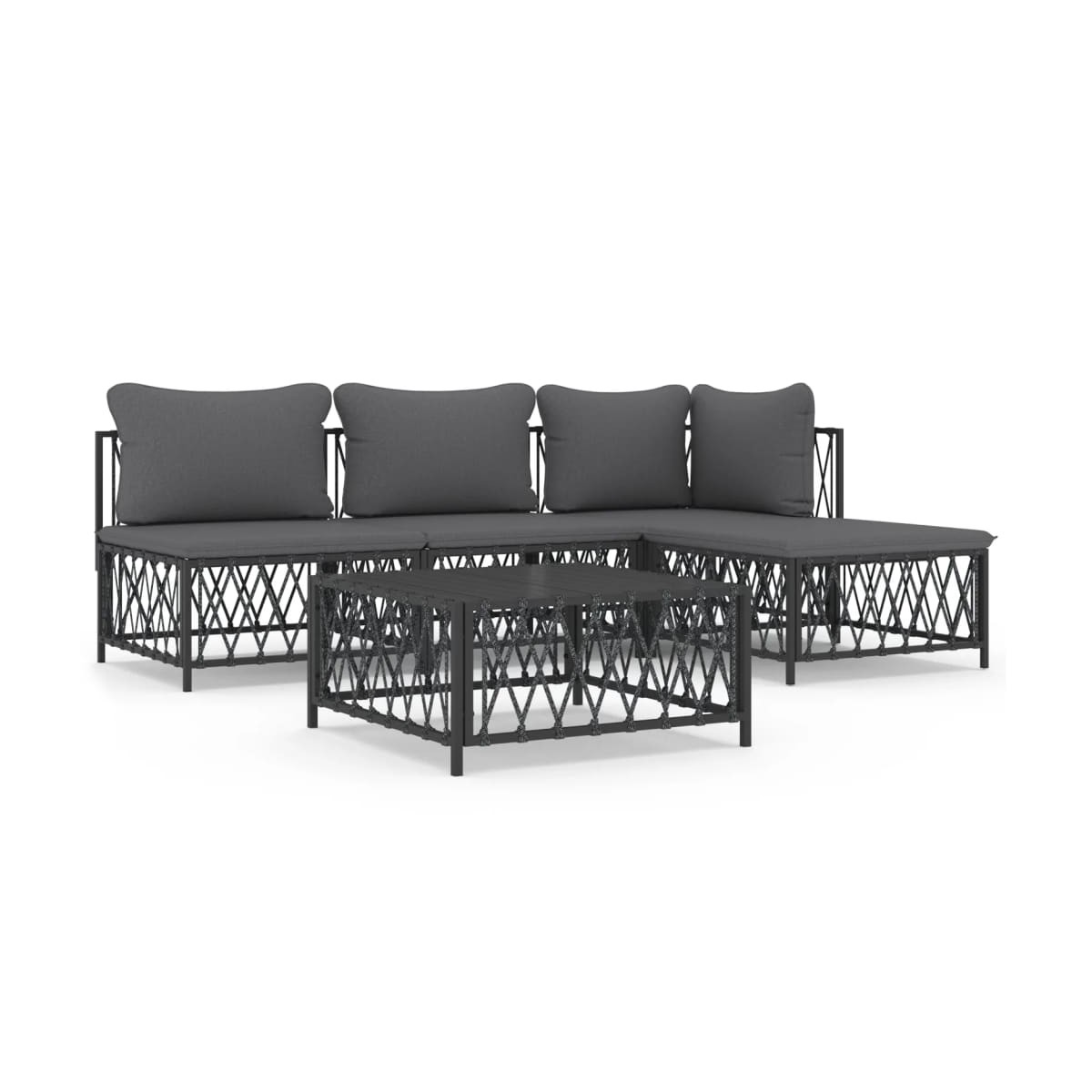 ¡Disfruta de una taza de café o té en el espacio al aire libre de la casa con este cómodo juego de muebles de jardín! Material duradero: La tela tejida es cualquier textil formado por tejido. Se trata de un tipo de tela muy útil que usamos muy a menudo en nuestro día a día debido a su durabilidad y versatilidad.Estructura robusta: La estructura de acero con recubrimiento en polvo hace que el juego de sofás sea resistente y estable para usar a diario al aire libre.Cómodo asiento: El respaldo aporta un plus de comodidad al sofá de exterior. Además, los cojines gruesos y acolchados proporcionan comodidad al asiento.Diseño modular: El juego de sofás es flexible y fácil de mover, por lo que puedes combinarlo con otros segmentos modulares de la tienda web para crear tus propias configuraciones personales de juegos de muebles para jardín. Nota:Para asegurarte de que tus muebles de exterior se mantengan hermosos, recomendamos protegerlos con una funda impermeable.