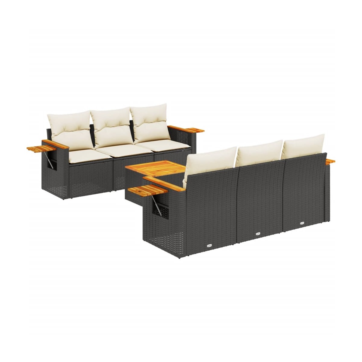 Este conjunto de sofás de jardín es el complemento perfecto para el jardín, terraza o patio, ya que proporciona un espacio confortable y acogedor para charlar con familiares y amigos o simplemente relajarte y disfrutar del aire libre. Material duradero: El ratán PE, también conocido como ratán sintético, es un material sintético resistente y de bajo mantenimiento que se parece al ratán natural. Es ligero, fácil de limpiar y se usa comúnmente para muebles de exterior debido a su durabilidad y propiedades resistentes a la intemperie.Función de almacenamiento con bolsa resistente al agua: El mueble de jardín cuenta con espacio de almacenamiento debajo del asiento, completo con una bolsa resistente al agua para guardar cojines, juguetes y otros artículos. La bolsa interior se puede sujetar de forma segura a los muebles de exterior con cierres de gancho y bucle para mayor estabilidad.Cómoda mesa auxiliar: Este mueble de exterior cuenta con una mesa auxiliar plegable con un resorte de gas en los reposabrazos, lo que proporciona un lugar conveniente para mantener tus elementos esenciales al alcance de la mano.Funda desenfundable y lavable: Estos cojines de asiento cuentan con fundas desenfundables para facilitar el lavado y mantenimiento.Diseño modular: Este conjunto de muebles de exterior tiene un diseño modular, por lo que es completamente flexible y fácil de mover, para que puedas crear una disposición de muebles de exterior personalizada. Información útil:Para asegurarte de que tus muebles de exterior se mantengan hermosos, recomendamos protegerlos con una funda impermeable.