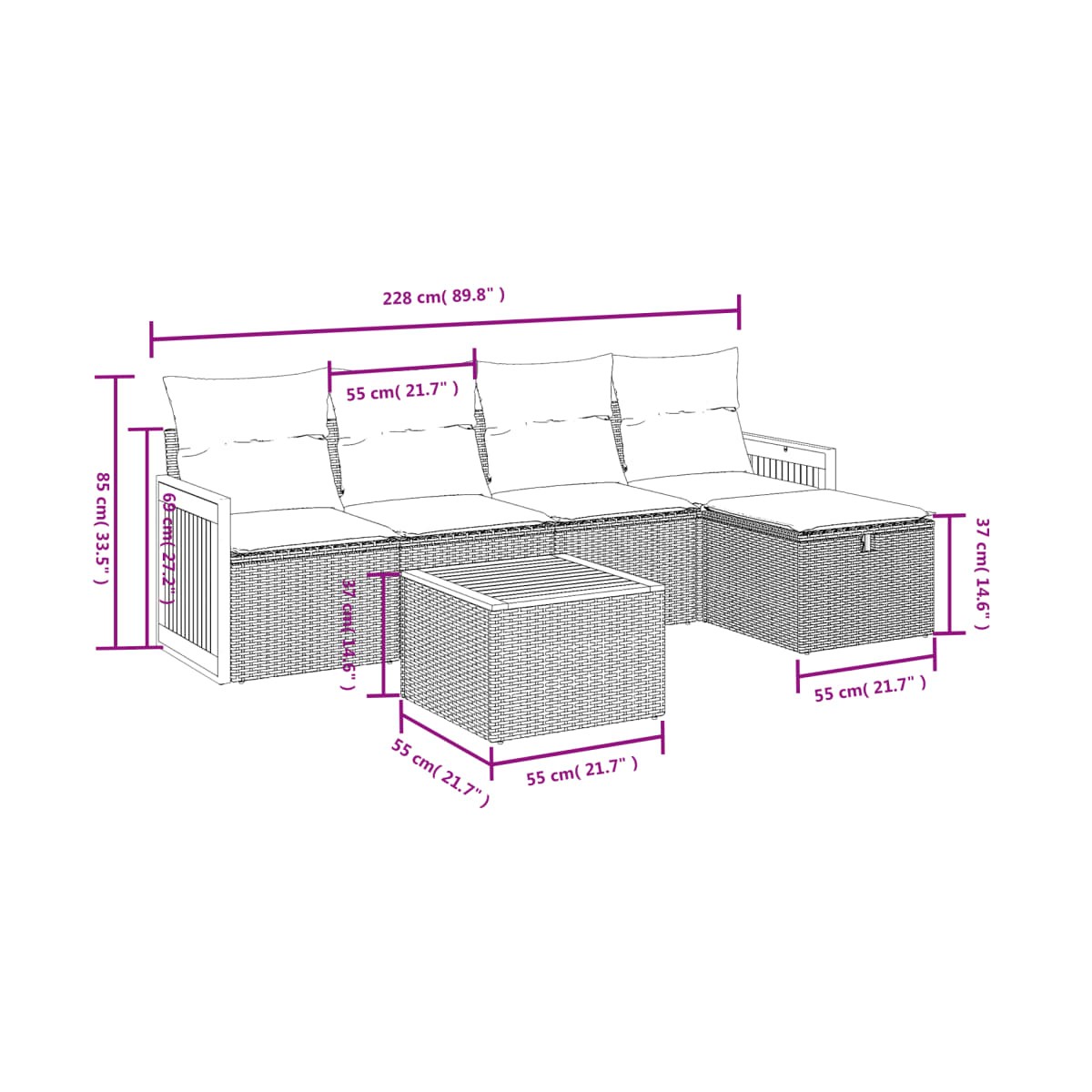 Este conjunto de sofás de jardín es el complemento perfecto para el jardín, terraza o patio, ya que proporciona un espacio confortable y acogedor para charlar con familiares y amigos o simplemente relajarte y disfrutar del aire libre. Material duradero: El ratán PE, también conocido como ratán sintético, es un material sintético resistente y de bajo mantenimiento que se parece al ratán natural. Es ligero, fácil de limpiar y se usa comúnmente para muebles de exterior debido a su durabilidad y propiedades resistentes a la intemperie.Superficie estable y fácil de limpiar: Esta mesa de jardín tiene una superficie de madera de acacia que es resistente, duradero y fácil de limpiar con un paño húmedo.Funda desenfundable y lavable: Estos cojines de asiento cuentan con fundas desenfundables para facilitar el lavado y mantenimiento.Estructura robusta y estable: La estructura de acero con recubrimiento en polvo garantiza que el mueble de jardín sea resistente y estable para usarlo a diario al aire libre.Diseño modular: Este conjunto de muebles de exterior tiene un diseño modular, por lo que es completamente flexible y fácil de mover, para que puedas crear una disposición de muebles de exterior personalizada. Información útil:Para asegurarte de que tus muebles de exterior se mantengan hermosos, recomendamos protegerlos con una funda impermeable.