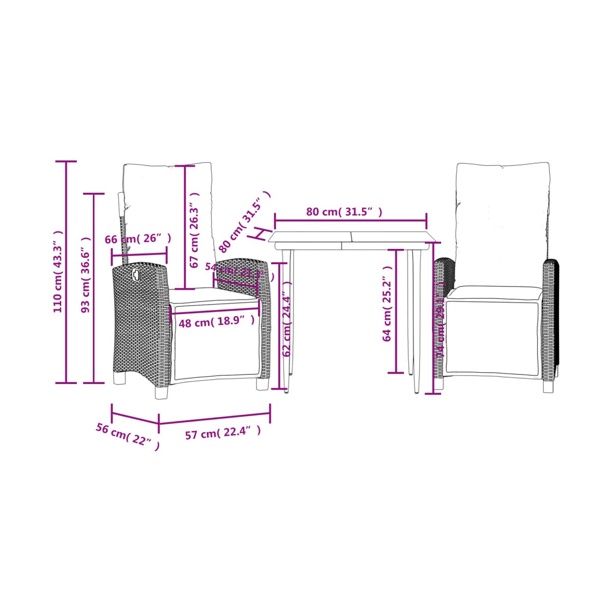 Este juego de comedor de jardín es una gran elección para comer al aire libre o simplemente para relajarte en el jardín, el patio o la terraza. Material duradero: El ratán de PE, también conocido como ratán sintético, es un material sintético resistente y de bajo mantenimiento que se parece al ratán natural. Es ligero, fácil de limpiar y se usa comúnmente para muebles de exterior debido a su durabilidad y propiedades resistentes a la intemperie.Respaldo y reposapiés ajustables: este asiento de jardín tiene un asa. Puedes ajustar el respaldo y el reposapiés a cualquier posición tirando del asa y devolverlos rápidamente a sus posiciones originales.Superficie de vidrio: La superficie de la mesa de exterior es de vidrio templado resistente y duradero, por lo que es fácil de limpiar con un paño húmedo y añade un toque de elegancia a tu espacio exterior.Experiencia de asiento cómoda: Estos muebles de exterior, completos con cojines acolchados gruesos, ofrecen una experiencia de asiento cómoda.Funda desenfundable y lavable: Estos cojines de asiento cuentan con fundas desenfundables para facilitar el lavado y mantenimiento. Información útil:Para asegurarte de que tus muebles de exterior se mantengan hermosos, recomendamos protegerlos con una funda impermeable.