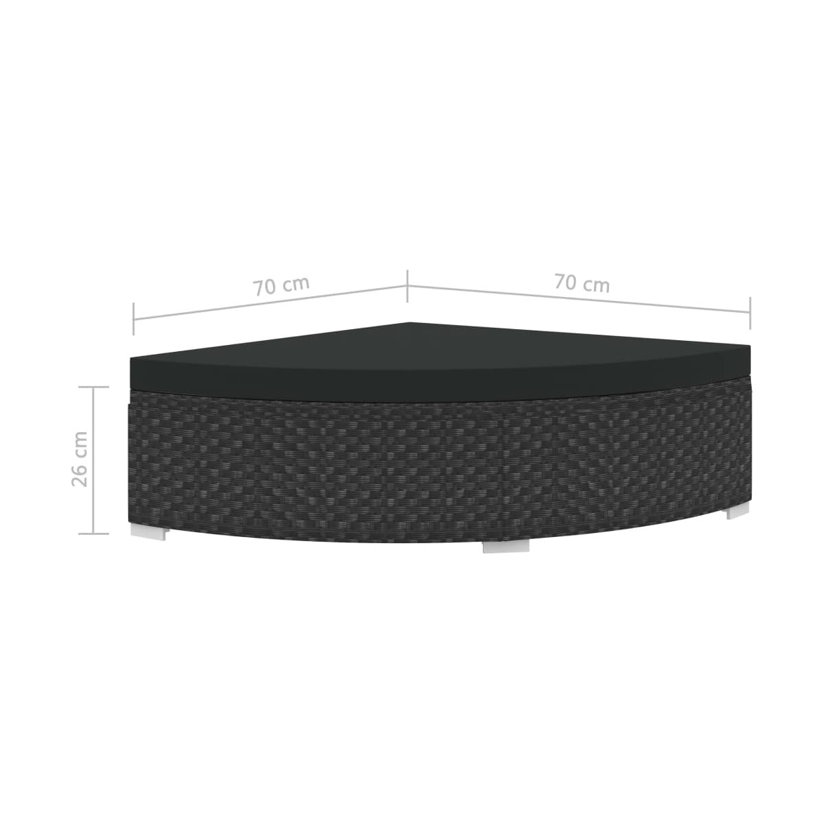 Este conjunto de sofás de ratán combina estilo y funcionalidad, y se convertirá en la principal atracción de tu jardín o patio. El conjunto de muebles completo ha sido diseñado para uso en exteriores durante todo el año. Gracias al ratán PE, que es resistente a la intemperie y al agua, el conjunto de salón es fácil de limpiar, resistente y adecuado para el uso diario. El conjunto de asientos dispone de una estructura de acero con recubrimiento de polvo robusta, que hace que sea muy duradero. También es ligero y modular, lo que hace que sea totalmente flexible y fácil de mover para adaptarse a cualquier entorno. Los gruesos cojines extraíbles son muy cómodos. La entrega incluye 1 sofá esquinero, 2 sofás centrales, 2 otomanas, 1 taburete en forma de abanico, 6 cojines de asiento y 4 cojines de respaldo.