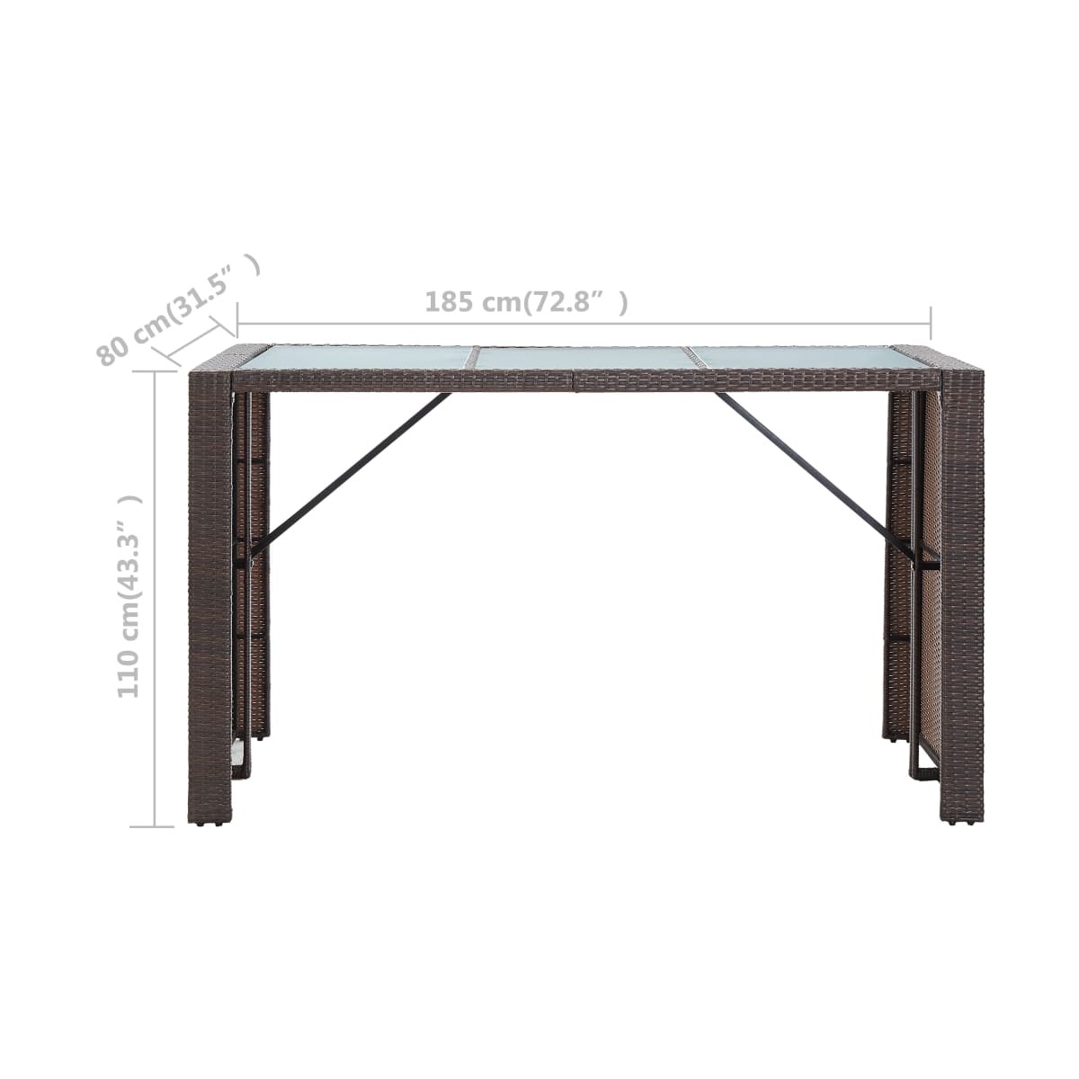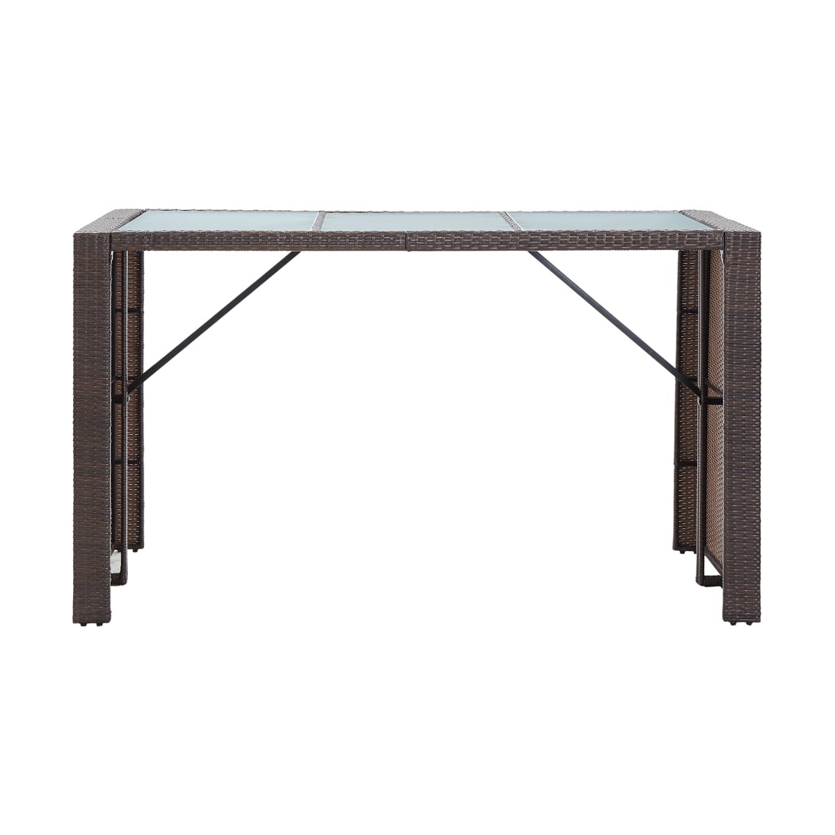 El set de bar para jardín de ratán sintético tiene un diseño elegante y será el centro de atención de tu jardín, patio o terraza. Hecho de ratán PE resistente a la intemperie y con una superficie de 3 piezas de cristal templado esmerilado, este conjunto de comedor para exterior es fácil de limpiar, resistente y adecuado para el uso diario. La estructura de acero con recubrimiento en polvo hace que la mesa y los taburetes sean muy resistentes y duraderas. Gracias a su construcción ligera, todos los elementos son fáciles de mover. Los cojines gruesos y extraíbles del asiento son muy cómodos. Las fundas de los cojines tienen cremalleras y se pueden quitar y lavar fácilmente. Nota: Te recomendamos tapar el mueble en condiciones de lluvia, nieve y heladas.