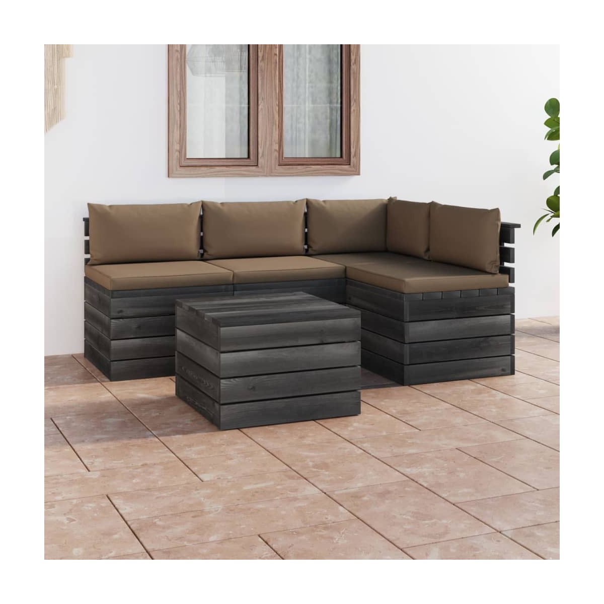 Este juego de muebles de palés para jardín con cojines es una opción excelente para relajarte y disfrutar del buen tiempo, echar una siesta o charlar con tu familia o amigos. El juego de salón de madera, con un diseño de palés atemporal, agrega un toque de encanto rústico a tu patio, jardín o sala de estar. El juego de muebles de jardín está hecho de madera maciza de pino, lo que lo hace duradero y estable. Este juego de sofás para patio posee una construcción sólida y requiere poco mantenimiento. Con una superficie resistente, la mesa es ideal para tener los alimentos y las bebidas al alcance. Gracias a la tapicería 100% de poliéster y al grueso acolchado, los cojines son suaves y proporcionan el máximo confort. Además, el diseño modular también permite colocar el conjunto en cualquier disposición según tu gusto. Ten en cuenta que la madera es un producto natural y puede mostrar imperfecciones.