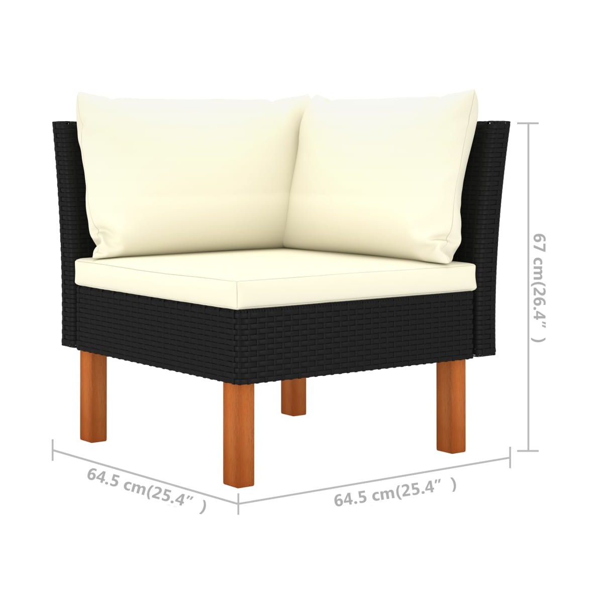- Dimensiones del sofá de la esquina: 64,5 x 64,5 x 67 cm (ancho x profundo x alto)
