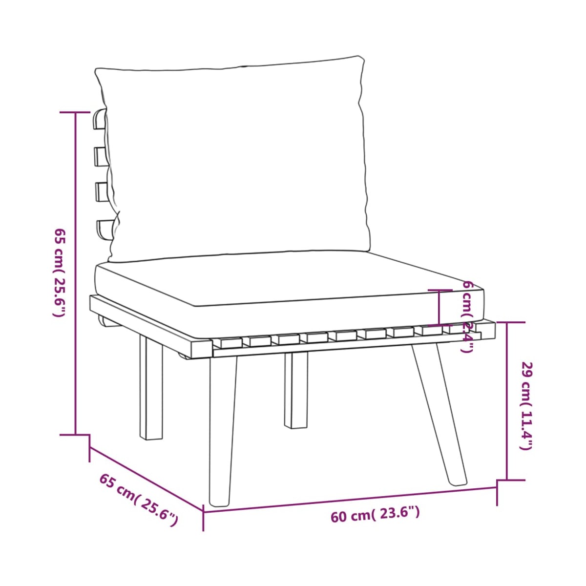 Este juego de salón de madera para jardín es una excelente opción para relajarse y disfrutar del buen tiempo, echar una siesta o charlar con tu familia o amigos. Con un diseño de listones atemporal, el juego de salón de madera agrega un toque de encanto rústico a tu patio, terraza o jardín. Hecho de madera maciza de acacia, el juego de muebles de exterior es resistente a la intemperie y muy duradero. Combinado con los cojines de grueso acolchado, este juego de salón para patio brinda la máxima comodidad. ¡Puedes combinarlo con otros segmentos modulares para crear tus propias configuraciones de juego de salón de jardín personal! Nota: Para prolongar la vida útil de los muebles de exterior, te recomendamos que los limpies con regularidad y no los dejes al aire libre sin protección innecesariamente.Limpieza: Usa una solución de jabón suave.Almacenamiento: Si es posible, guarda el producto en un lugar fresco y seco en el interior. Si el producto se almacena al aire libre, protégelo con una funda impermeable. Limpia y seca el exceso de agua o nieve de las superficies planas después de una lluvia o nevada. Permite la ventilación para evitar daños relacionados con la humedad.