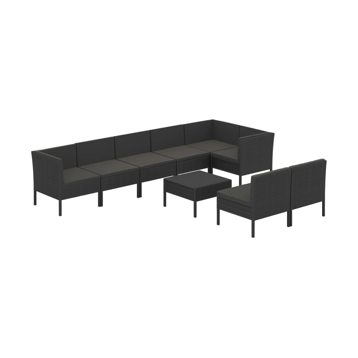 Crea un salón llamativo y relajante con el que siempre has soñado con este juego de salón de jardín. ¡Puedes disfrutar de una tarde soleada y relajante o una noche de verano con tu familia y amigos en este juego de muebles de jardín! Con el ratán PE resistente a la intemperie, este juego de salón para exterior es fácil de limpiar y mantener. La estructura de acero con recubrimiento en polvo hace que el juego de tumbonas sea estable y robusto. Equipado con cojines gruesos y suaves, este juego de tumbonas de jardín brindará la máxima comodidad para sentarse. Las fundas de poliéster fáciles de limpiar se pueden quitar y lavar. Además, gracias a su diseño ligero y modular, puedes mover este conjunto por tu casa con gran facilidad. Nota: Para prolongar la vida útil de los muebles de exterior, te recomendamos que los limpies con regularidad y no los dejes al aire libre sin protección innecesariamente.Limpieza: Usa una solución de jabón suaveAlmacenamiento: Si es posible, guarda el producto en un lugar fresco y seco en el interior. Si el producto se almacena al aire libre, protégelo con una funda impermeable. Limpia y seca el exceso de agua o nieve de las superficies planas después de una lluvia o nevada. Permite la ventilación para evitar daños relacionados con la humedad.
