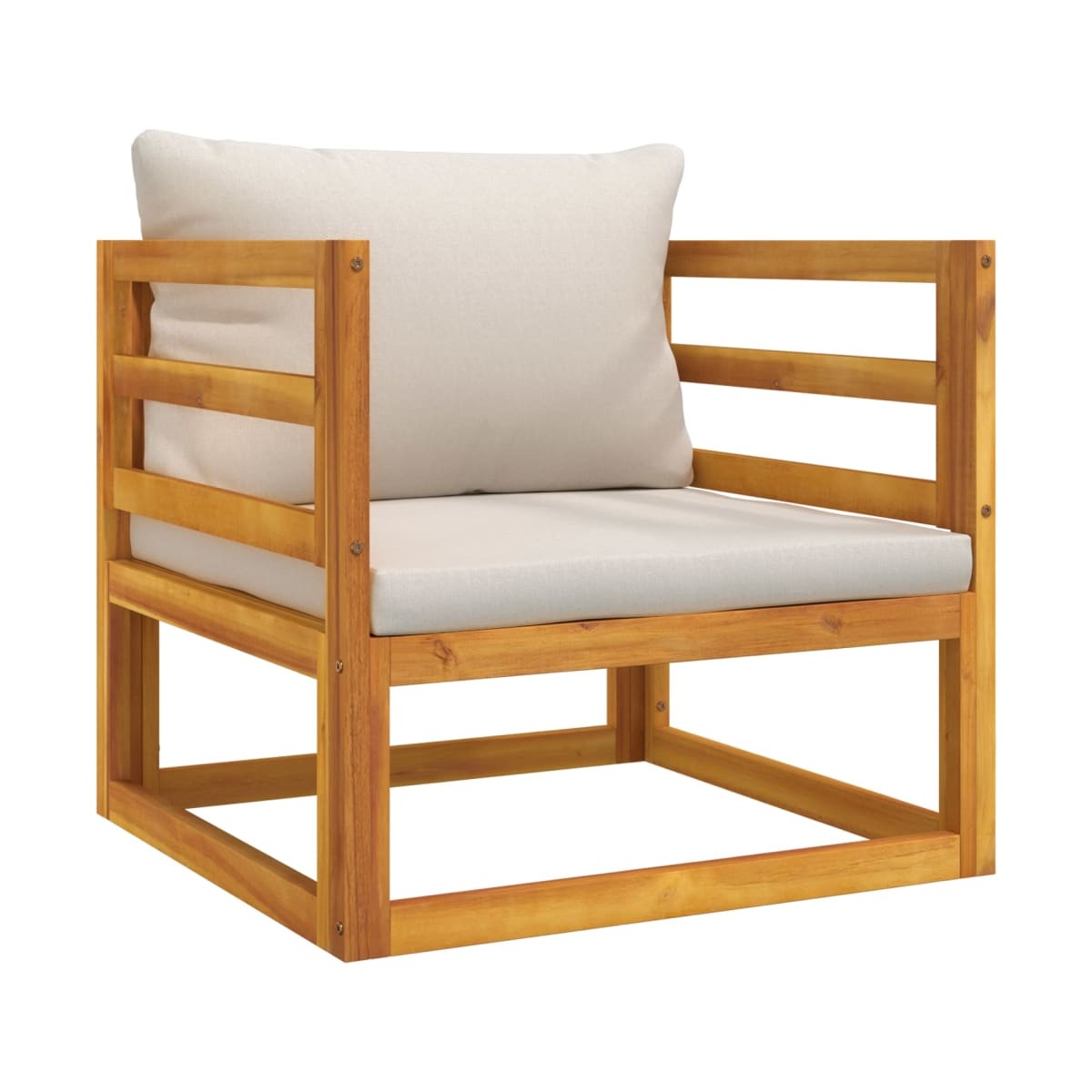¡Disfruta de una taza de café o té con un tiempo agradable en el espacio al aire libre de la casa con este elegante juego de muebles de jardín de madera! Madera maciza de acacia: Este juego de muebles de jardín está hecho de madera maciza de acacia. La madera maciza de acacia es un bonito material natural. La madera de acacia es una madera dura tropical, densa, robusta y duradera.Cómodo asiento: El respaldo añade un plus de comodidad al sofá. Además, los cojines gruesos y acolchados proporcionan comodidad al asiento.Mesa práctica: La mesa resistente es perfecta para colocar comidas, bebidas y otros artículos decorativos.Diseño modular: El juego de sofás de jardín es flexible y fácil de mover, por lo que puedes combinarlo con otros segmentos modulares de la tienda web para crear tus propias configuraciones personales de juegos de muebles para jardín. Información útil:Para facilitar al máximo el montaje, cada producto se entrega con un manual. Nota:Para asegurarte de que tus muebles de exterior se mantengan hermosos, recomendamos protegerlos con una funda impermeable.