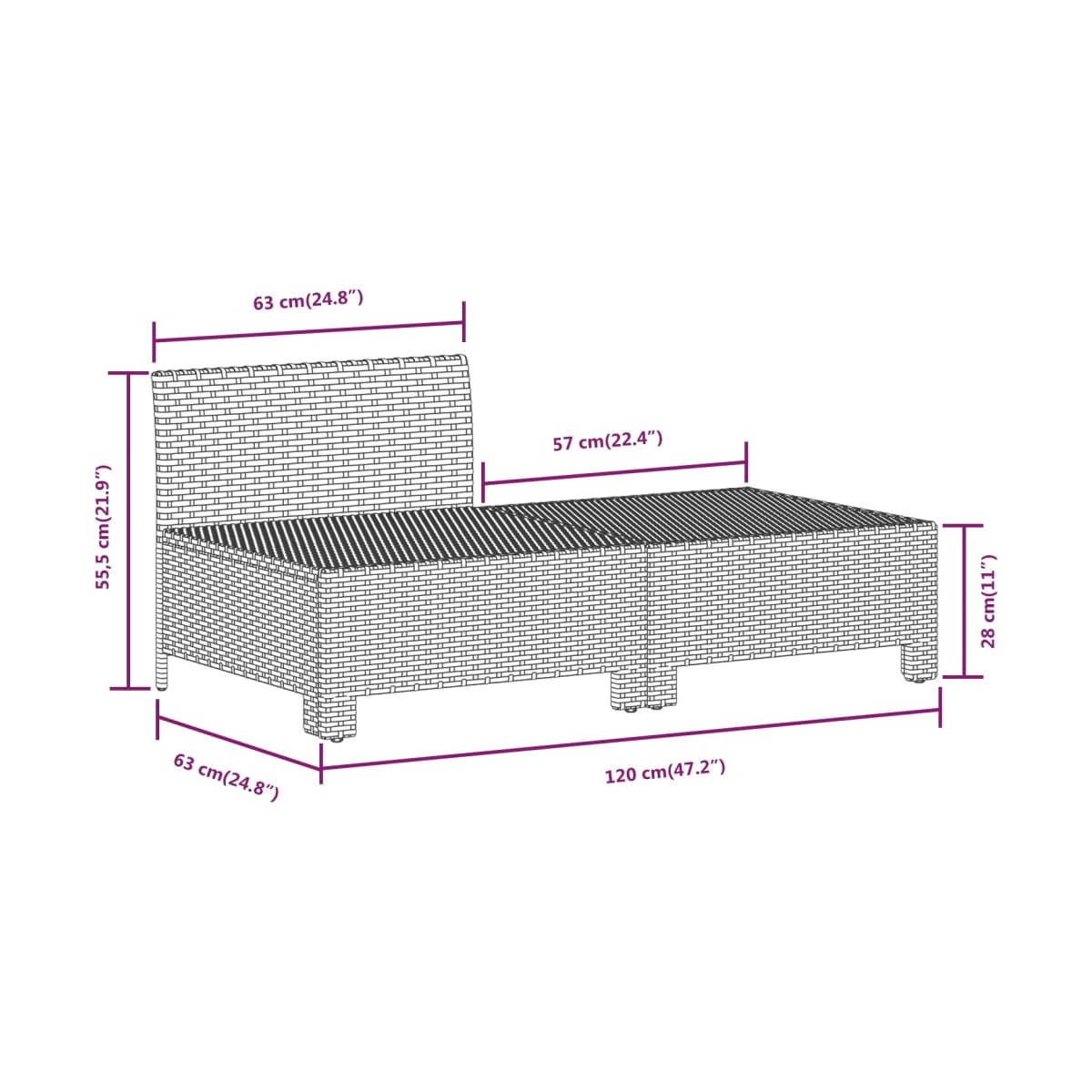 - Dimensiones: 57 x 57 x 28 cm (ancho x profundo x alto)