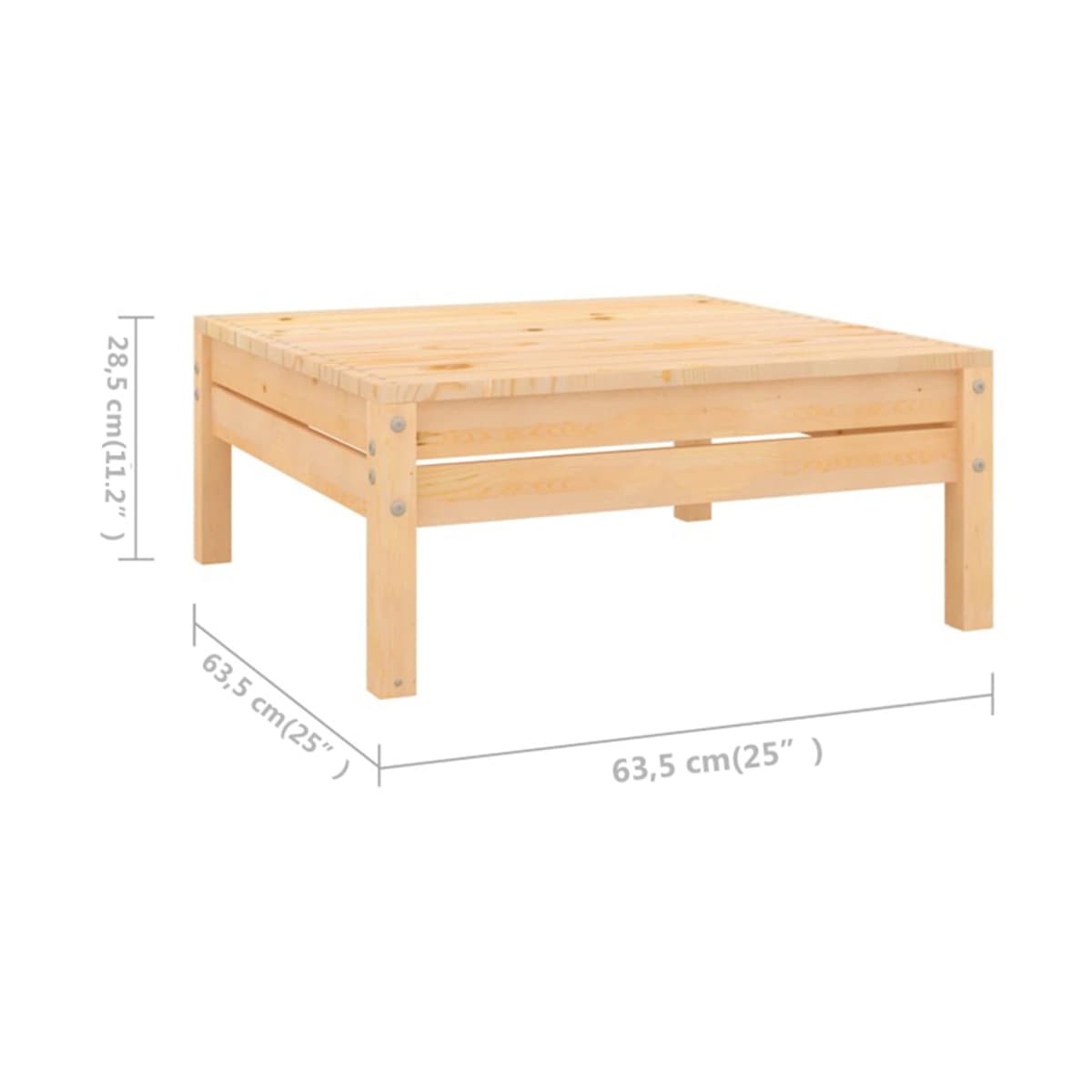 - Dimensiones del reposapiés/mesa: 63,5 x 63,5 x 28,5 cm (largo x ancho x alto)
