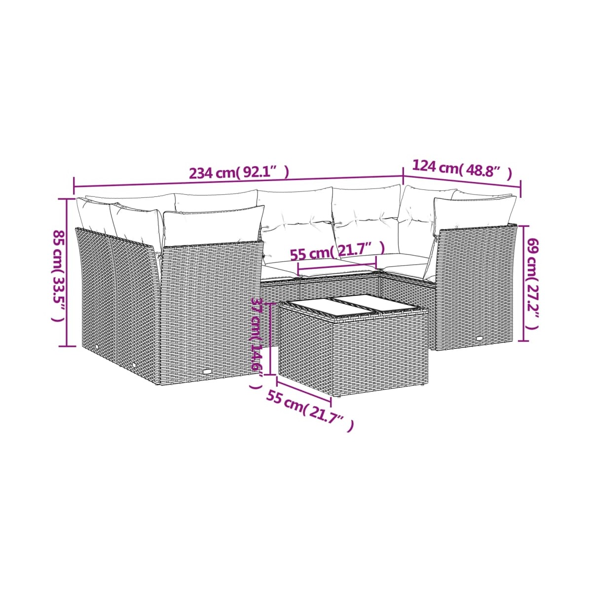 Este conjunto de sofás de jardín es el complemento perfecto para el jardín, terraza o patio, ya que proporciona un espacio confortable y acogedor para charlar con familiares y amigos o simplemente relajarte y disfrutar del aire libre. Material duradero: El ratán de PE, también conocido como ratán sintético, es un material sintético resistente y de bajo mantenimiento que se parece al ratán natural. Es ligero, fácil de limpiar y se usa comúnmente para muebles de exterior debido a su durabilidad y propiedades resistentes a la intemperie.Experiencia de asiento cómoda: Este juego de muebles de exterior, completo con cojines acolchados gruesos, ofrece una experiencia de asiento cómoda.Funda desenfundable y lavable: Estos cojines de asiento cuentan con fundas desenfundables para facilitar el lavado y mantenimiento.Superficie de vidrio: La superficie de la mesa de exterior es de vidrio templado resistente y duradero, por lo que es fácil de limpiar con un paño húmedo y añade un toque de elegancia a tu espacio exterior.Diseño modular: Este conjunto de muebles de exterior tiene un diseño modular, por lo que es completamente flexible y fácil de mover, para que puedas crear una disposición de muebles de exterior personalizada. Información útil:Para asegurarte de que tus muebles de exterior se mantengan hermosos, recomendamos protegerlos con una funda impermeable.
