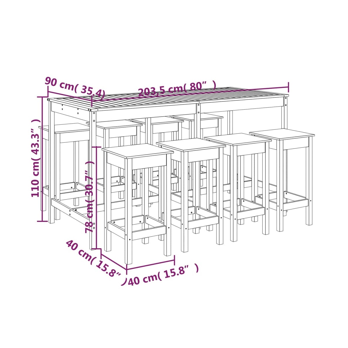 ¡Toma un sorbo de tu bebida favorita o disfruta de una buena comida con la familia y los amigos alrededor de este juego de mesa y taburetes altos de madera! Madera maciza de pino: Este juego de mesa y taburetes altos está hecho de madera maciza de pino. La madera maciza de pino es un bonito material natural. La madera de pino tiene vetas rectas, y los nudos dan al material su distintivo aspecto rústico.Superficie resistente: La mesa alta de estos muebles de bar tiene una superficie resistente, perfecta para colocar bebidas, comida y artículos decorativos.Diseño práctico: Estos taburetes altos de madera no tienen respaldo, para que te puedas sentar cómodamente por cualquier lado de los taburetes y para que puedas guardarlos debajo de la encimera cuando no se usen.Amplios usos: Con un diseño minimalista, el juego de muebles altos para jardín encaja en cualquier rincón del jardín, patio, balcón, la terraza, etc. Nota:Para asegurarte de que tus muebles de exterior se mantengan hermosos, recomendamos protegerlos con una funda impermeable.