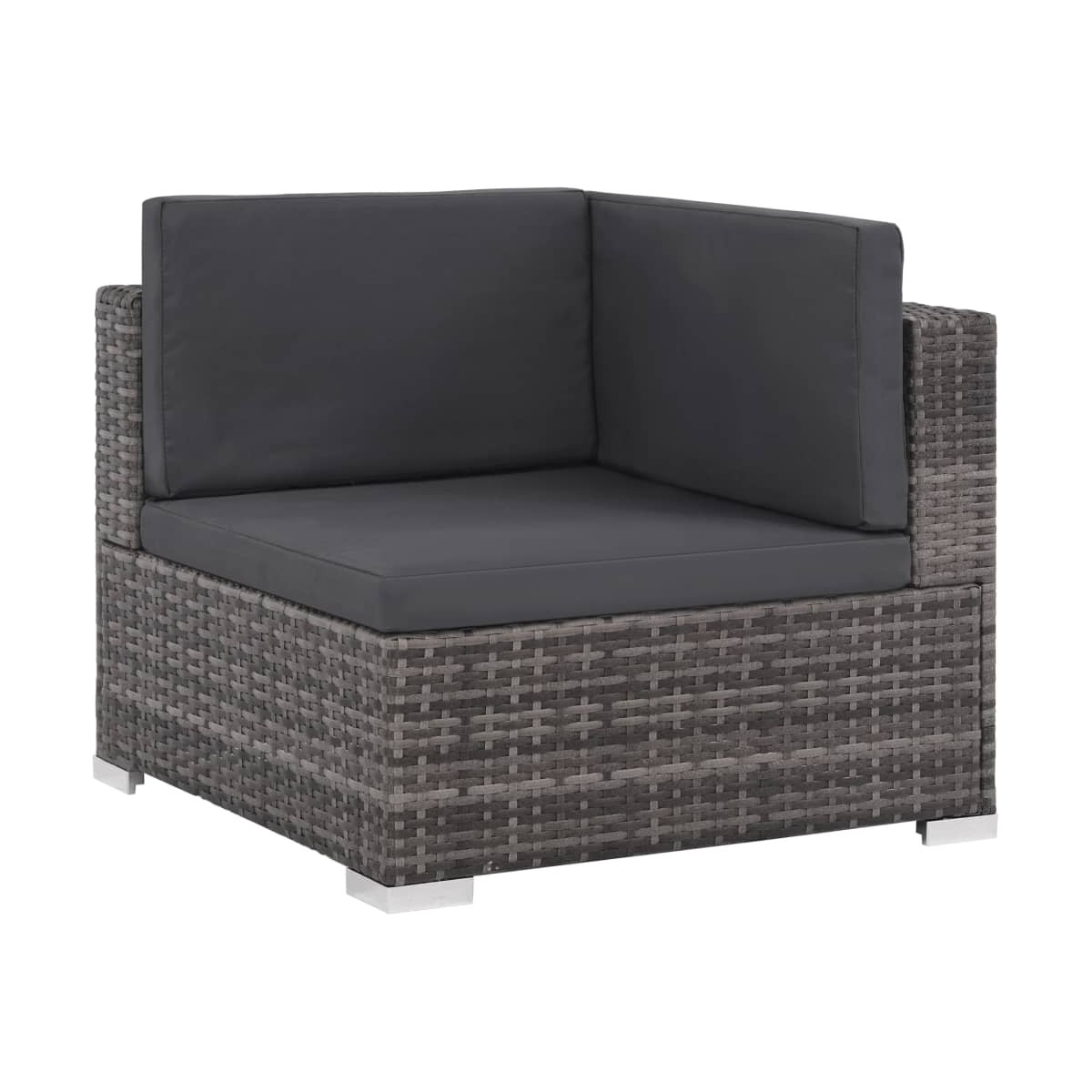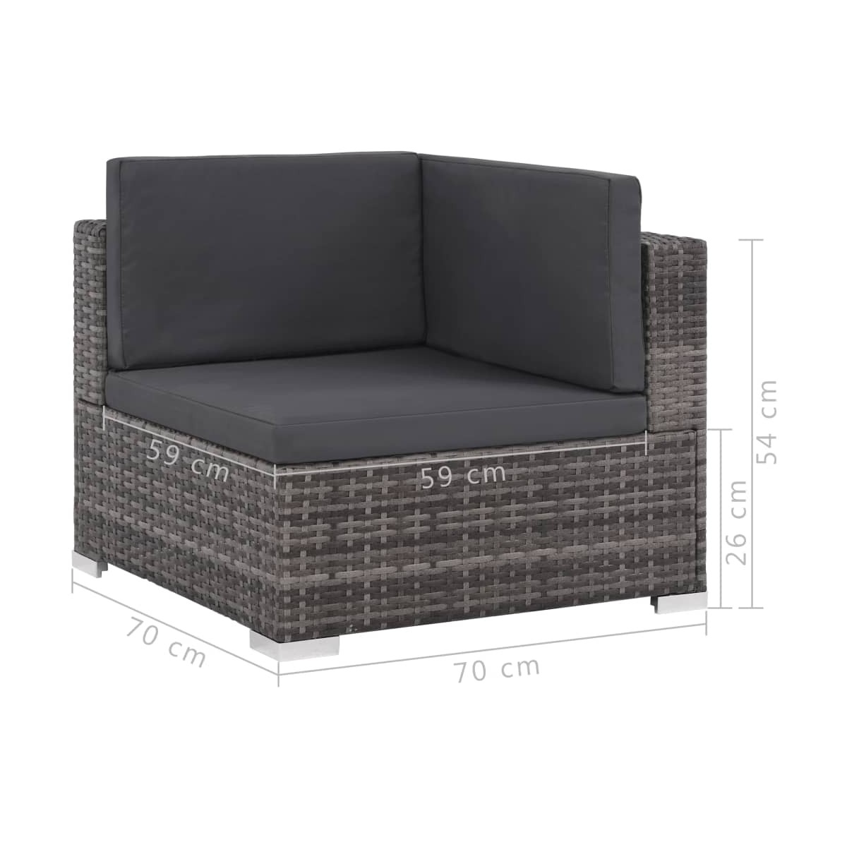 Este conjunto de sofás de ratán sintético que consta de 1 sofá de esquina, 2 sofás centrales, 2 taburetes cuadrados, 1 taburete curvo y 10 cojines, ofrecerá una elegante zona de asientos para su jardín o patio. Gracias al ratán sintético resistente al agua, el juego de sofás de patio es fácil de limpiar, resistente y adecuado para el uso diario al aire libre. La estructura de acero con recubrimiento en polvo hacen al conjunto robusto y estable. Es ligero y las secciones modulares se pueden combinar fácilmente en diferentes configuraciones. Este juego también se entrega con cojines muy cómodos y acolchados para el máximo confort. Las cubiertas de poliéster que apenas necesitan mantenimiento también se pueden quitar y lavar. Este conjunto es fácil de montar. Nota: Recomendamos cubrir este mueble cuando llueva, nieve o hiele para que dure el mayor tiempo posible.