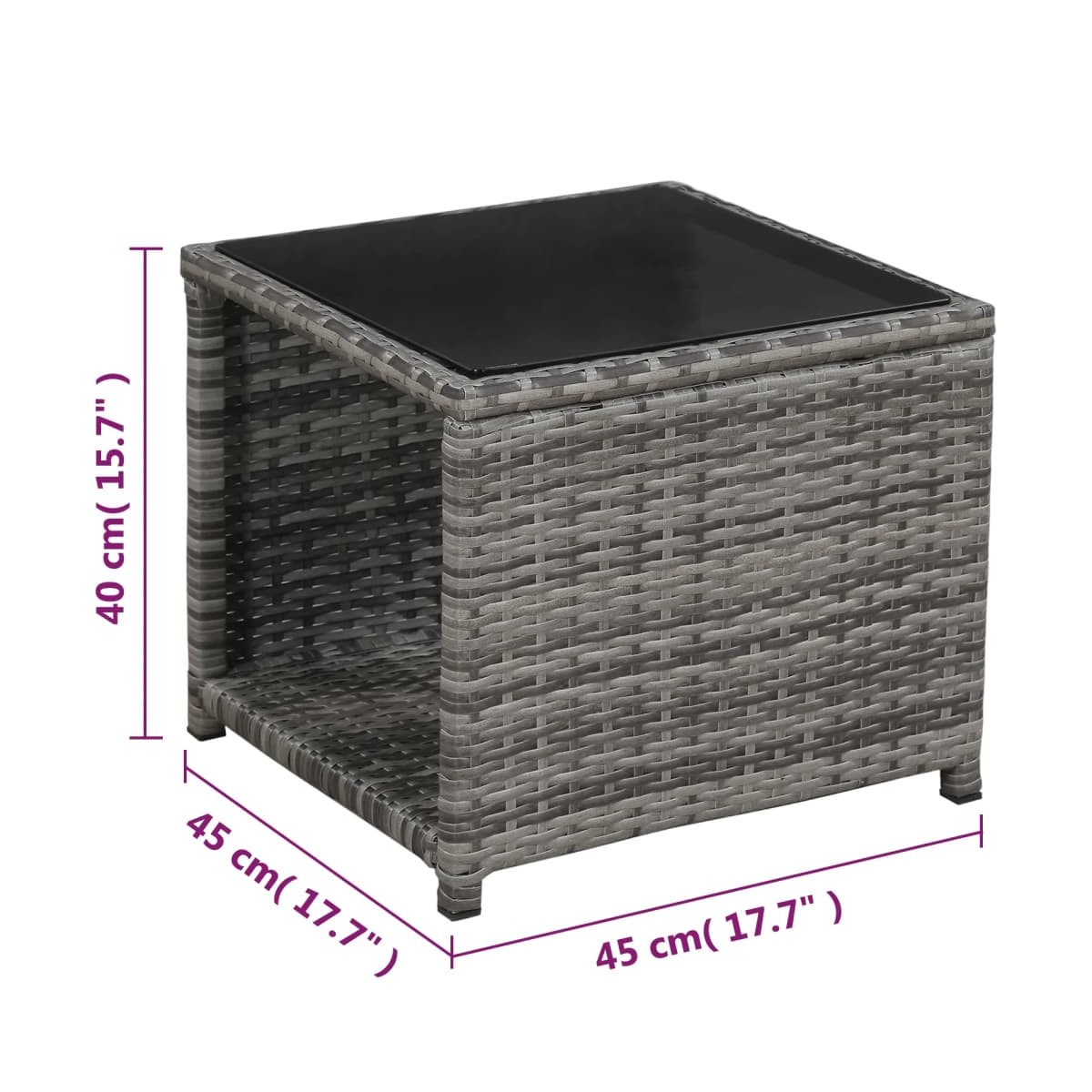 Nuestro conjunto de muebles bistro de ratán sintético agregará un toque de elegancia moderna a tu patio, balcón o jardín con su diseño sobrio pero elegante. Gracias al respaldo y reposapiés ajustables de los sillones reclinables, puedes sentarte cómodamente y relajarte por completo. Hecho de ratán sintético resistente a la intemperie, el conjunto de muebles de exterior es fácil de limpiar, resistente y adecuado para su uso diario. La estructura de acero con recubrimiento de polvo hace que los sillones y la mesa sean muy resistentes y duraderos. La mesa tiene una superficie de cristal. Las sillas reclinables brindan todo el confort necesario. El respaldo se reclinará tirando del botón en el lado. Gracias a su construcción ligera, el conjunto de muebles es fácil de mover. Este conjunto también se entrega con cojines para el asiento, muy cómodos y acolchados, para el máximo confort. Las fundas de poliéster necesitan poco mantenimiento y también se pueden quitar y lavar. La entrega incluye 2 sillones, 1 mesa y 2 cojines de asiento. El conjunto de muebles de jardín es fácil de montar. Nota: Recomendamos cubrir los sillones y la mesa en caso de lluvia, nieve o heladas.