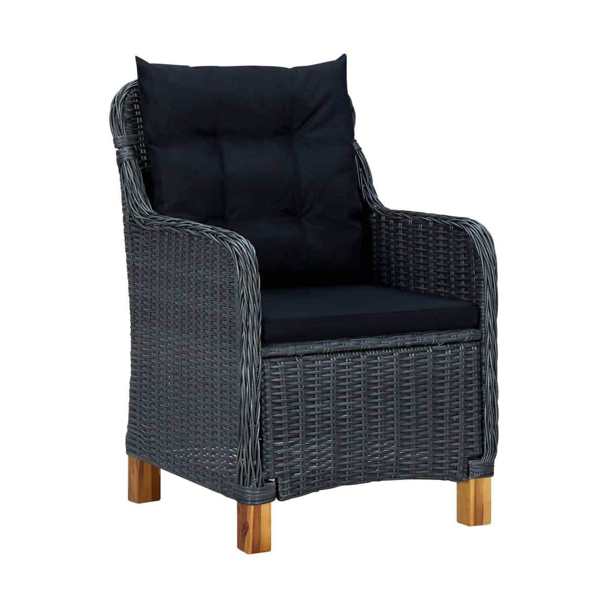 ¡Crea una estética atractiva y cohesionada en el espacio al aire libre de tu casa con este juego de comedor para jardín! Esta mesa de exterior está hecha de madera maciza de acacia, lo que la hace robusta y estable. La superficie con acabado de aceite también facilita la limpieza de la mesa con un paño húmedo. Además, las patas curvas contribuyen a su elegante diseño. Con una estructura de acero cubierto con ratán PE redondo resistente a la intemperie, estas sillas de comedor son robustas y fáciles de limpiar. Cada asiento viene con cojines acolchados gruesos para agregar comodidad en tu tiempo de descanso. Además, las patas de madera maciza de acacia se suman a su robustez y estabilidad. Nota: Para prolongar la vida útil de los muebles de exterior, te recomendamos que los limpies con regularidad y no los dejes al aire libre sin protección innecesariamente.Limpieza: Usar una solución de jabón suaveAlmacenamiento: Si es posible, guarda el producto en un lugar fresco y seco en el interior. Si el producto se almacena al aire libre, protégelo con una funda impermeable. Limpia y seca el exceso de agua o nieve de las superficies planas después de una lluvia o nevada. Permite la ventilación para evitar daños relacionados con la humedad.