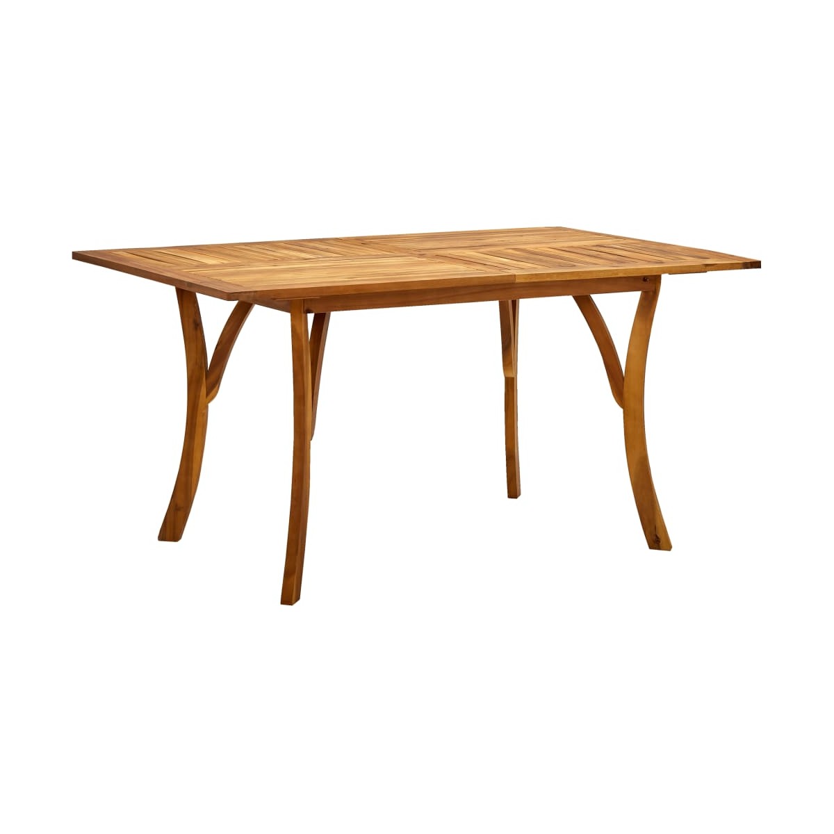 ¡Crea una estética atractiva y cohesionada en el espacio al aire libre de tu casa con este juego de comedor para jardín! Esta mesa de exterior está hecha de madera maciza de acacia, lo que la hace robusta y estable. La superficie con acabado de aceite también facilita la limpieza de la mesa con un paño húmedo. Además, las patas curvas contribuyen a su elegante diseño. Con una estructura de acero cubierto con ratán PE resistente a la intemperie, estas sillas de comedor son robustas y fáciles de limpiar. Los cojines acolchados gruesos añaden comodidad en tu tiempo de descanso. Nota: Para prolongar la vida útil de los muebles de exterior, te recomendamos que los limpies con regularidad y no los dejes al aire libre sin protección innecesariamente.Limpieza: Usar una solución de jabón suaveAlmacenamiento: Si es posible, guarda el producto en un lugar fresco y seco en el interior. Si el producto se almacena al aire libre, protégelo con una funda impermeable. Limpia y seca el exceso de agua o nieve de las superficies planas después de una lluvia o nevada. Permite la ventilación para evitar daños relacionados con la humedad.