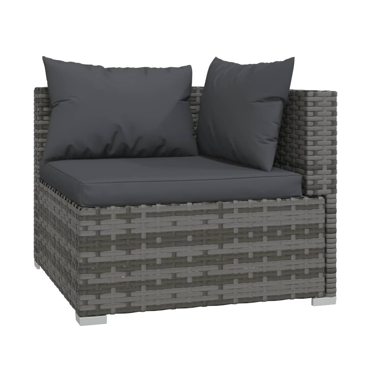 ¡Disfruta de tus momentos de relax con este moderno juego de muebles de jardín! Puede satisfacer una variedad de necesidades diferentes. Estructura robusta: Este juego de muebles para patio posee una robusta estructura de acero con recubrimiento en polvo y patas de cromado plástico, que es muy duradero.Material de primera calidad: El conjunto de muebles de jardín está diseñado con ratán PE resistente al agua, lo que lo hace fácil de limpiar, resistente y adecuado para el uso diario al aire libre.Diseño modular: El diseño modular también permite colocar el conjunto en cualquier disposición o combinarlos con otros segmentos modulares para satisfacer tus necesidades.Comodidad adicional para sentarse: Los cojines y almohadas acolchados gruesos y extraíbles brindan una comodidad óptima para tu experiencia de estar al aire libre. Nota:Para prolongar la vida de tus muebles de exterior, te recomendamos que los protejas con una funda impermeable.