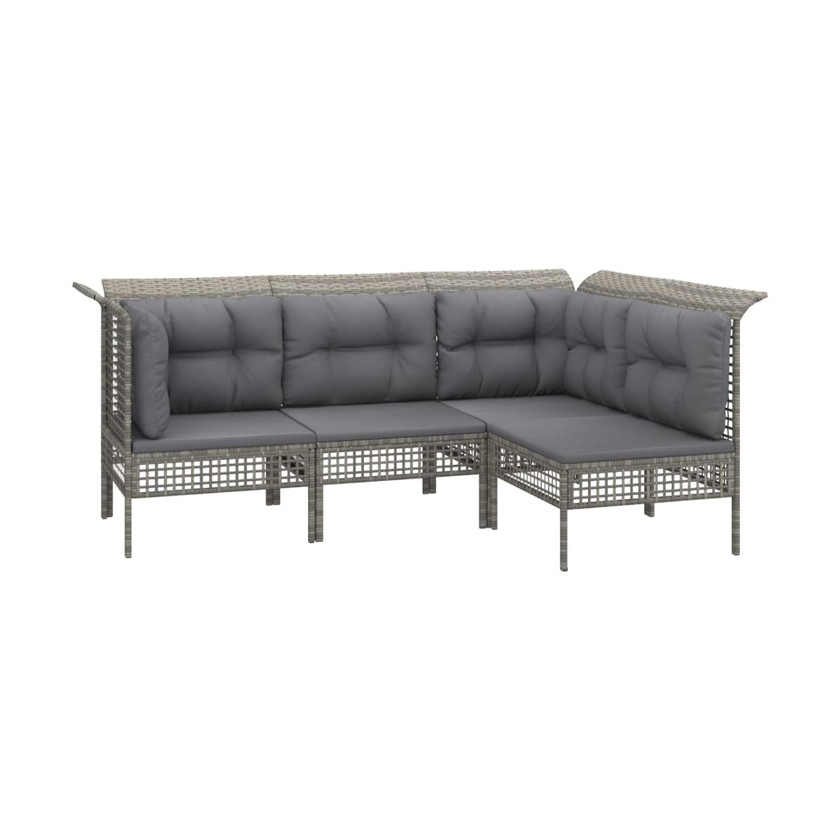 ¡Disfruta de un agradable café en el espacio al aire libre de la casa con este juego de muebles para jardín! Es un aporte perfecto para el jardín y la terraza, y crea además una impresión duradera. Material resistente a la intemperie: El ratán sintético es resistente a la intemperie y fácil de limpiar. La parte exterior se mantiene hermosa durante mucho tiempo. Es más económico que otros materiales, además de ofrecer una gran calidad, comodidad y aspecto estético.Estructura robusta y estable: La estructura de acero del conjunto de muebles garantiza su solidez y estabilidad.Cómodo asiento: El respaldo aporta un plus de comodidad al juego de muebles. Además, los cojines gruesos y acolchados proporcionan comodidad al asiento.Diseño modular: El juego de muebles de jardín es flexible y fácil de mover, por lo que puedes combinarlo con otros segmentos modulares de la tienda web para crear tus propias configuraciones personales de juegos de muebles para jardín. Nota:Para asegurarte de que tus muebles de exterior se mantengan hermosos, recomendamos protegerlos con una funda impermeable.