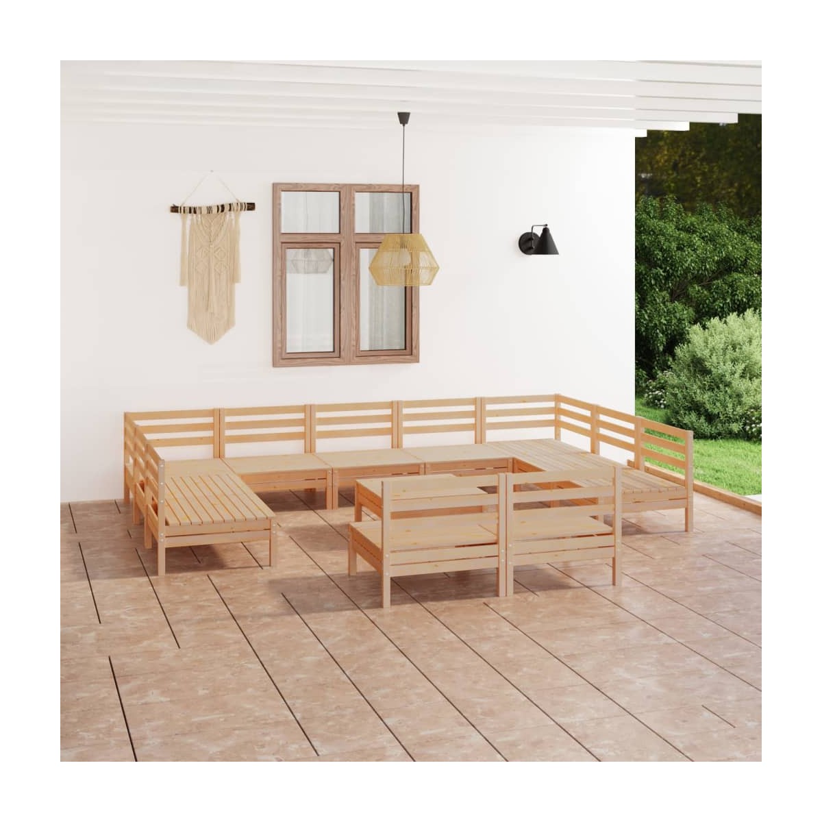 Este juego de muebles para jardín de madera está pensado para ser la opción ideal para relajarte y disfrutar del buen tiempo, echar una siesta o charlar con tu familia o amigos. Con un diseño de palets atemporal, el sofá de madera agregará un toque de encanto rústico a tu patio, jardín o sala de estar. Hecho de madera maciza de pino, este juego de salón para patio es muy duradero y resistente a la intemperie. Este conjunto de muebles tiene una construcción sólida y requiere poco mantenimiento. Además, el diseño modular también permite colocar el conjunto en cualquier disposición según tu gusto. Nota: Para prolongar la vida de tus muebles de exterior, te recomendamos que los protejas con una funda impermeable.