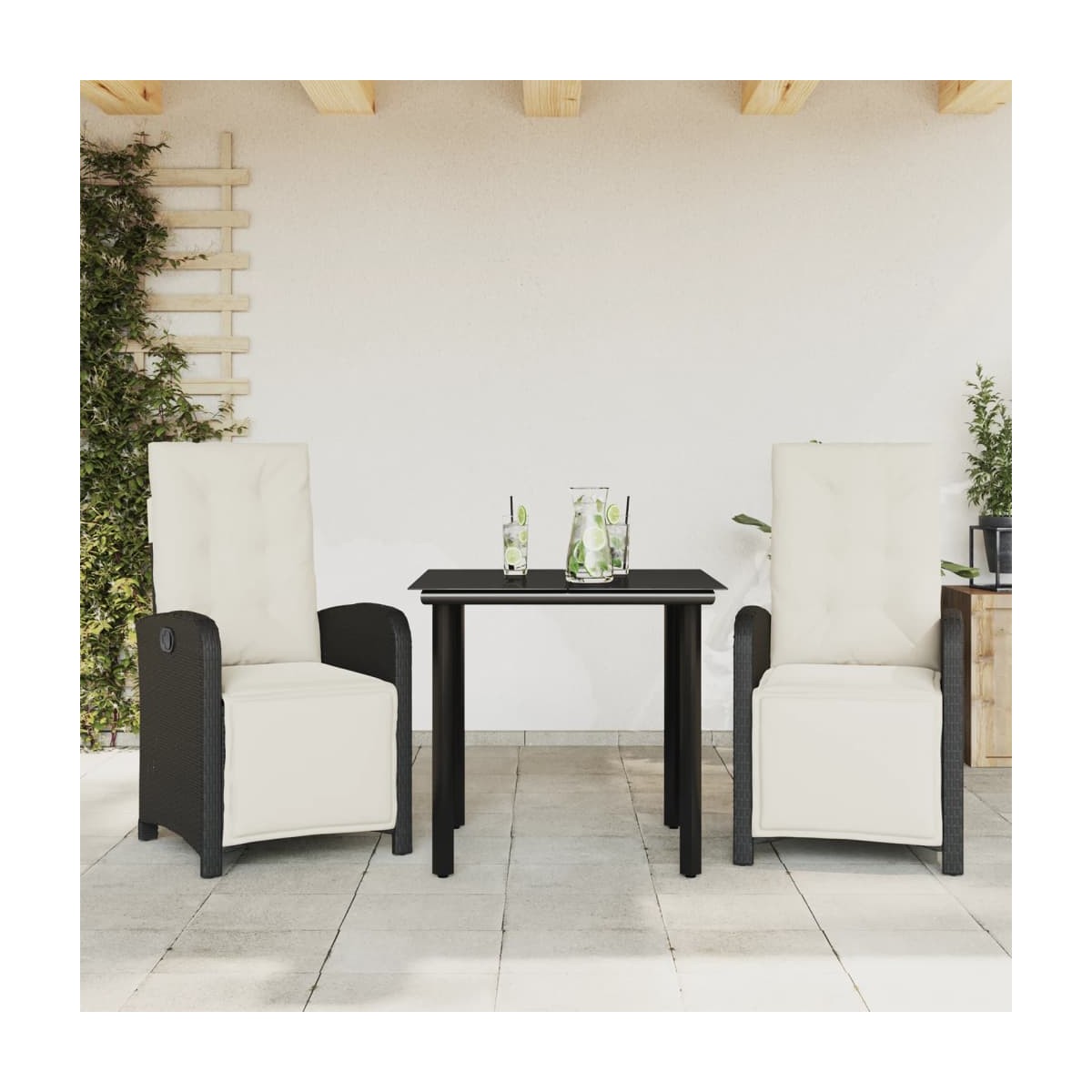 ¡Disfruta de una taza de café o charla con tu familia y amigos en el jardín, el patio o en el balcón con este cómodo juego de bistró! Material duradero: El ratán PE, también conocido como ratán sintético, es un material sintético resistente y de bajo mantenimiento que se parece al ratán natural. Es ligero, fácil de limpiar y se usa comúnmente para muebles de exterior debido a su durabilidad y propiedades resistentes a la intemperie.Respaldo y reposapiés ajustables: este asiento de jardín tiene un asa. Puedes ajustar el respaldo y el reposapiés a cualquier posición tirando del asa y devolverlos rápidamente a sus posiciones originales.Experiencia de asiento cómoda: Estos muebles de exterior, completos con cojines acolchados gruesos, ofrecen una experiencia de asiento cómoda.Funda desenfundable y lavable: Estos cojines de asiento cuentan con fundas desenfundables para facilitar el lavado y mantenimiento. Los cojines del respaldo tienen una solapa en la parte posterior para facilitar la fijación a los respaldos.Superficie de vidrio: La superficie de la mesa de exterior es de vidrio templado resistente y duradero, por lo que es fácil de limpiar con un paño húmedo y añade un toque de elegancia a tu espacio exterior. Información útil:Para asegurarte de que tus muebles de exterior se mantengan hermosos, recomendamos protegerlos con una funda impermeable.