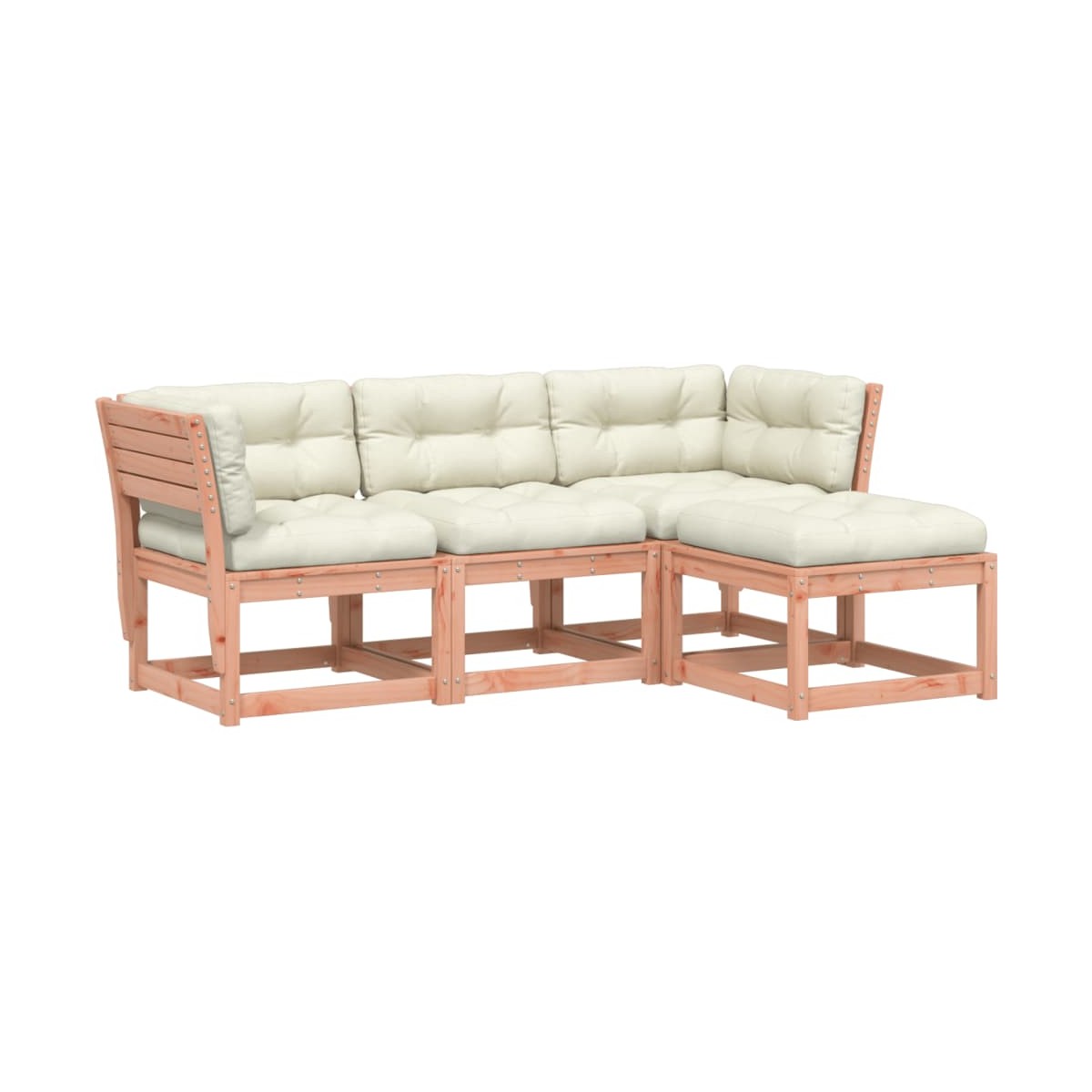 Este conjunto de muebles de jardín de madera tiene un diseño elegante y es una excelente opción para relajarse y disfrutar en el jardín o patio. Madera maciza de abeto douglas: La madera maciza de abeto douglas es madera muy duradera que funciona bien para exteriores. La madera de pino douglas también es lo bastante fuerte para trabajar con el mínimo cuidado, incluso bajo la influencia del clima. Diseño de listones: El diseño de listones del juego de salón de madera evita la acumulación de agua, manteniendo el asiento seco y evitando que se pudra innecesariamente. Cómodo asiento: El respaldo y el reposabrazos aportan un plus de comodidad al juego de muebles de jardín. Además, el cojín grueso y acolchado proporciona comodidad al asiento. Diseño modular: Este conjunto de muebles de exterior tiene un diseño modular, por lo que es completamente flexible y fácil de mover, para que puedas crear una disposición de muebles de exterior personalizada. Información útil:Para asegurarte de que tus muebles de exterior se mantengan hermosos, recomendamos protegerlos con una funda impermeable.
