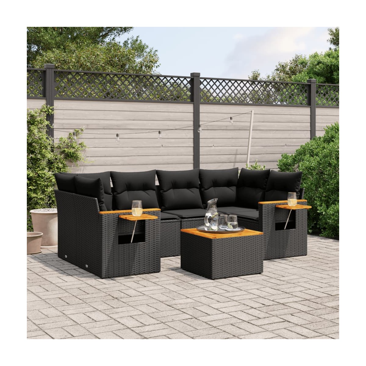 Este conjunto de sofás de jardín es el complemento perfecto para el jardín, terraza o patio, ya que proporciona un espacio confortable y acogedor para charlar con familiares y amigos o simplemente relajarte y disfrutar del aire libre. Material duradero: El ratán PE, también conocido como ratán sintético, es un material sintético resistente y de bajo mantenimiento que se parece al ratán natural. Es ligero, fácil de limpiar y se usa comúnmente para muebles de exterior debido a su durabilidad y propiedades resistentes a la intemperie.Superficie estable y fácil de limpiar: Esta mesa de jardín tiene una superficie de madera de acacia que es resistente, duradero y fácil de limpiar con un paño húmedo.Cómoda mesa auxiliar: Este mueble de exterior cuenta con una mesa auxiliar plegable con un resorte de gas en los reposabrazos, lo que proporciona un lugar conveniente para mantener tus elementos esenciales al alcance de la mano.Funda desenfundable y lavable: Estos cojines de asiento cuentan con fundas desenfundables para facilitar el lavado y mantenimiento.Diseño modular: Este conjunto de muebles de exterior tiene un diseño modular, por lo que es completamente flexible y fácil de mover, para que puedas crear una disposición de muebles de exterior personalizada. Información útil:Para asegurarte de que tus muebles de exterior se mantengan hermosos, recomendamos protegerlos con una funda impermeable.