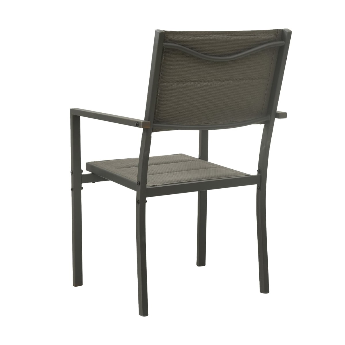 Con un diseño elegante y una estructura de acero duradero, este juego de muebles de comedor es una opción perfecta para tu jardín o patio. La sencilla elegancia de este juego de comedor hace que las cenas diarias sean especiales. Este set de comedor para exterior cuenta con un estructura de acero con recubrimiento en polvo, el cual hace que tanto la mesa como las sillas sean estables y duraderas. Las cómodas sillas de comedor están tapizadas con textileno resistent fácil de limpiar. Las sillas también se pueden apilar para ahorrar espacio cuando no están en uso. Nota: Para prolongar la vida útil de los muebles de exterior, te recomendamos que los limpies con regularidad y no los dejes al aire libre sin protección innecesariamente.Limpia: Usa una solución de jabón suave.Almacenamiento: Si es posible, guárdalos en un lugar fresco y seco en el interior. Si el producto se almacena al aire libre, protégelo con una funda impermeable. Limpia y seca el exceso de agua o nieve de las superficies planas después de una lluvia o nevada. Permite la ventilación para evitar daños relacionados con la humedad.