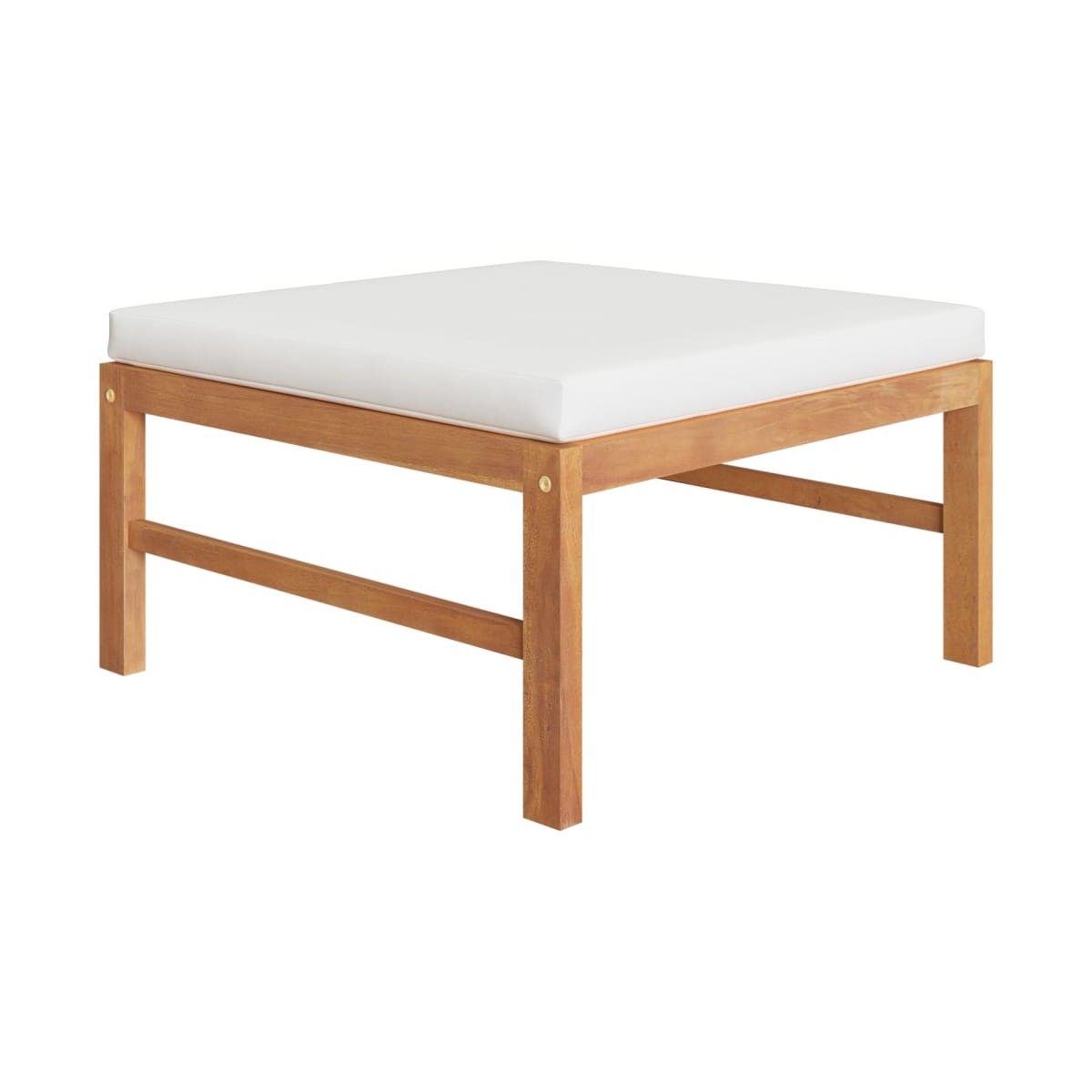 Este juego de jardín de madera, que destaca por su diseño elegante y sus cojines blandos, es un gran aporte para tu jardín, terraza o patio, para que puedas conversar con familiares y amigos o simplemente disfrutar del buen tiempo. Hecho de madera dura de teca muy duradera, este juego de muebles de teca ha sido curado, secado al horno y luego lijado para dar una apariencia muy suave. La madera de teca es conocida por su excepcional solidez y resistencia a la intemperie, lo que la hace mucho más adecuada para muebles de jardín que cualquier otro tipo de madera. La madera de teca es la elección perfecta si deseas comprar un mueble de jardín duradero. La superficie lijada es fácil de limpiar con un paño húmedo. El asiento y respaldo densamente acolchados, así como los reposapiés incluidos, aumentan la comodidad máxima. La mesa es ideal para colocar bebidas y comida. Nota: Para prolongar la vida útil de los muebles de exterior, te recomendamos que los limpies con regularidad y no los dejes al aire libre sin protección innecesariamente.Limpieza: Usa una solución de jabón suaveAlmacenamiento: Si es posible, guarda el producto en un lugar fresco y seco en el interior. Si el producto se almacena al aire libre, protégelo con una funda impermeable. Limpia y seca el exceso de agua o nieve de las superficies planas después de una lluvia o nevada. Permite la ventilación para evitar daños relacionados con la humedad.