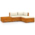 Este juego de salón de jardín es una excelente opción para relajarse y disfrutar del buen tiempo, echar una siesta o charlar con tu familia o amigos. Con un diseño de listones atemporal, el juego de salón de madera agrega un toque de encanto rústico a tu patio, terraza o jardín. Hecho de madera maciza de acacia, el juego de muebles de exterior es resistente a la intemperie y muy duradero. Combinado con los cojines de grueso acolchado, este conjunto de sofás proporciona la máxima comodidad. ¡Puedes combinarlo con otros segmentos modulares para crear tus propias configuraciones de juego de salón de jardín personal! Nota: Para prolongar la vida útil de los muebles de exterior, te recomendamos que los limpies con regularidad y no los dejes al aire libre sin protección innecesariamente.Limpieza: Usa una solución de jabón suaveAlmacenamiento: Si es posible, guarda el producto en un lugar fresco y seco en el interior. Si el producto se almacena al aire libre, protégelo con una funda impermeable. Limpia y seca el exceso de agua o nieve de las superficies planas después de una lluvia o nevada. Permite la ventilación para evitar daños relacionados con la humedad.