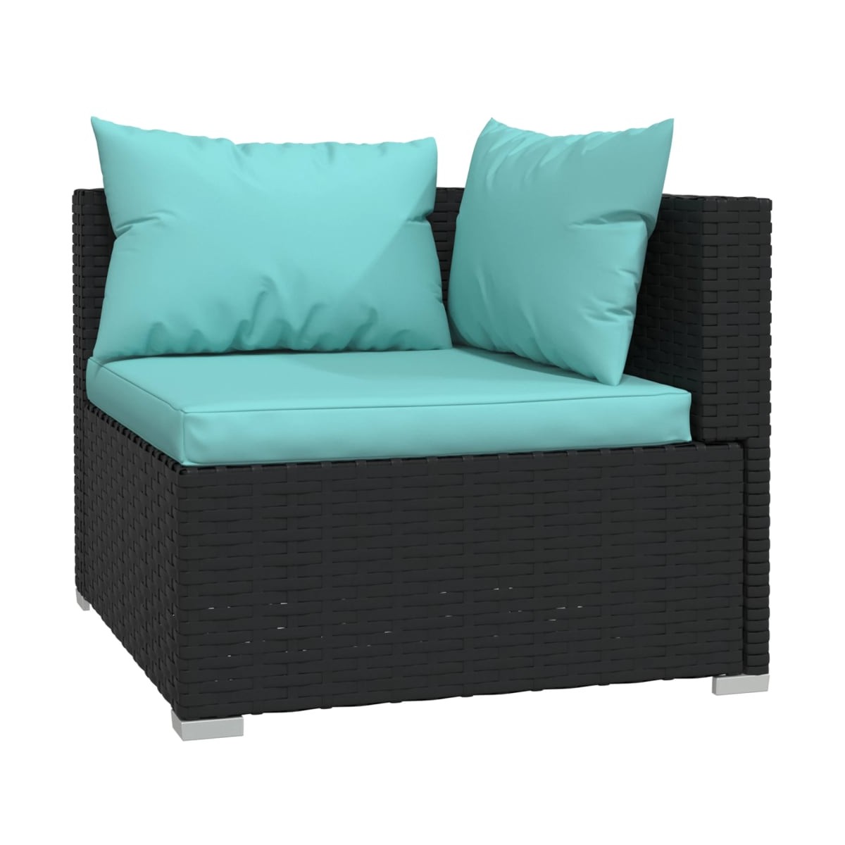 ¡Relájate y disfruta de tu tiempo libre con este moderno juego de muebles de jardín! Está destinado a satisfacer diferentes necesidades. Estructura robusta: Este juego de muebles para patio posee una robusta estructura de acero con recubrimiento en polvo y patas de cromado plástico, que es muy duradero.Material de primera calidad: El conjunto de sofás de jardín está diseñado con ratán de PE impermeable, por lo que es fácil de limpiar, resistente y adecuado para usar a diario al aire libre.Diseño modular: Además, el diseño modular también permite colocar el conjunto en cualquier disposición o combinarlo con otros segmentos modulares para satisfacer tus necesidades.Cómodos cojines y almohadas: Los cojines y las almohadas acolchados gruesos y extraíbles brindan una comodidad óptima para que te sientes al aire libre. Nota:Para prolongar la vida de tus muebles de exterior, te recomendamos que los protejas con una funda impermeable.