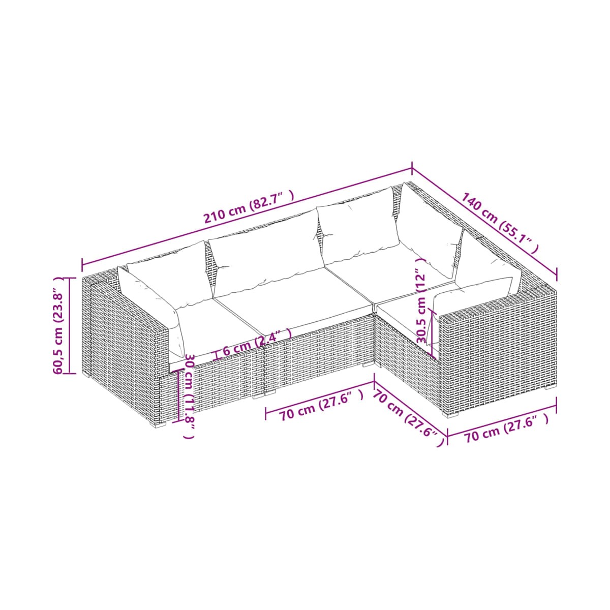 - Dimensiones del sofá de esquina/central (cada uno): 70 x 70 x 60,5 cm (largo x ancho x alto)