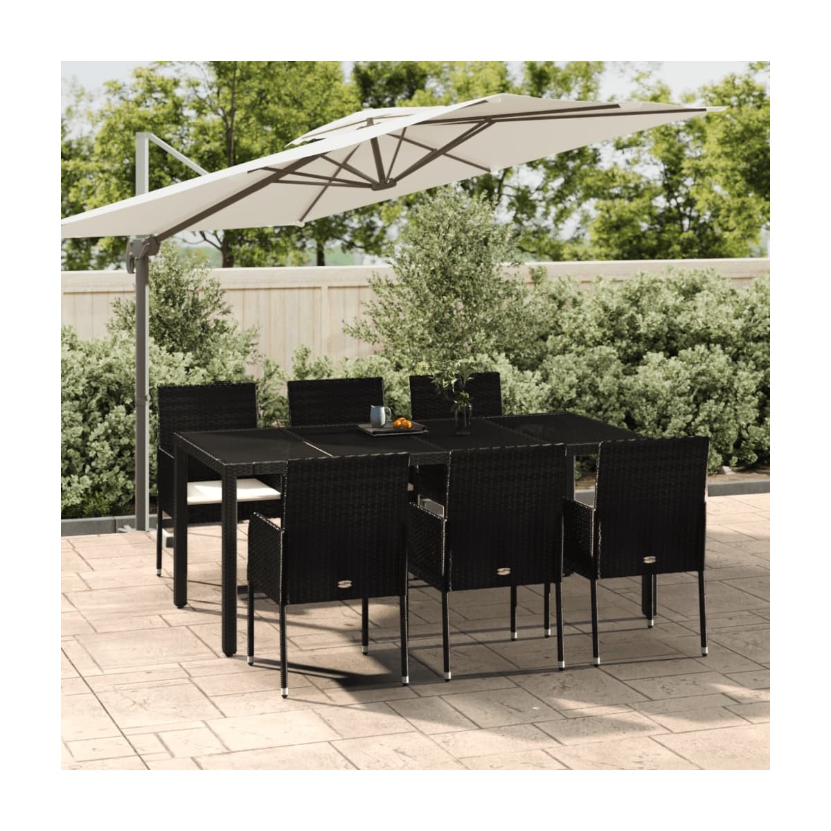 Este moderno juego de comedor de jardín, con un diseño elegante y contemporáneo, es una excelente opción para comer o relajarse en el jardín. Material resistente a la intemperie: El ratán PE, también conocido como ratán sintético, es resistente a la intemperie y fácil de limpiar. La parte exterior se mantiene hermosa durante mucho tiempo. Ofrece una gran calidad, comodidad y aspecto estético.Estructura robusta: Las estructuras de acero con recubrimiento en polvo hacen que el juego de comedor para exterior sea resistente y estable para usar a diario al aire libre.Superficie práctica: La superficie de madera maciza de acacia es perfecta para colocar bebidas, comida y adornos. Es bonita y fácil de limpiar.Diseño modular: El juego de comedor para patio es flexible y fácil de mover, por lo que puedes combinarlo con otros segmentos modulares de la web para crear tus propias configuraciones personales de muebles de comedor para jardín.Cómodo asiento: El respaldo añade un plus de comodidad al asiento de la silla de jardín. Además, los cojines gruesos y acolchados proporcionan comodidad al asiento. Información útil:Para facilitar al máximo el montaje, cada producto se entrega con un manual. Nota:Para asegurarte de que tus muebles de exterior se mantengan hermosos, recomendamos protegerlos con una funda impermeable.