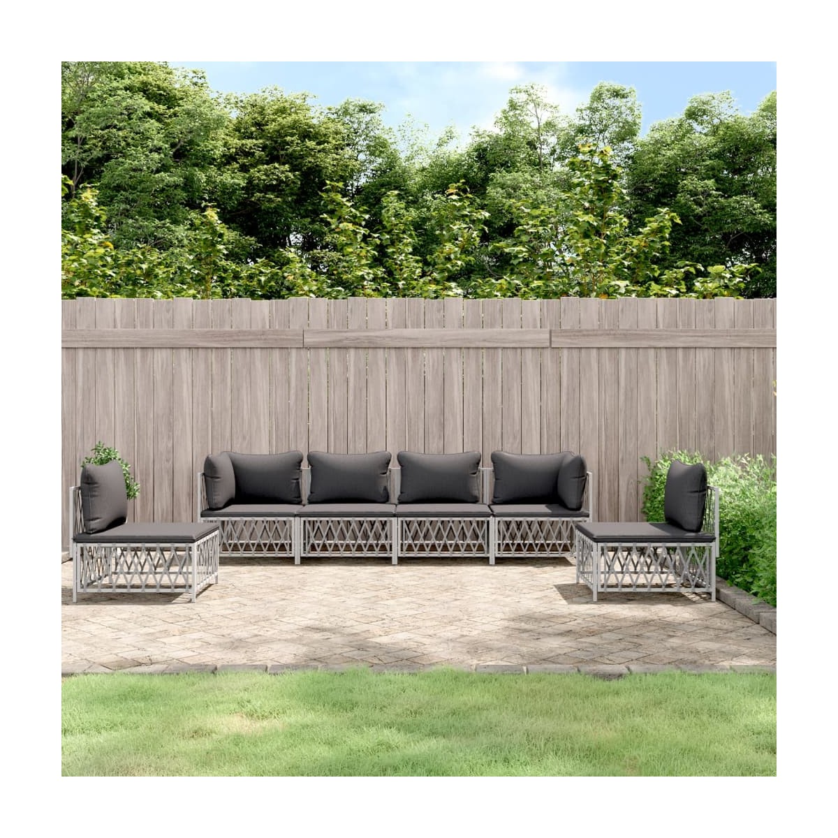 ¡Disfruta de una taza de café o té en el espacio al aire libre de la casa con este cómodo juego de muebles de jardín! Material duradero: La tela tejida es cualquier textil formado por tejido. Se trata de un tipo de tela muy útil que usamos muy a menudo en nuestro día a día debido a su durabilidad y versatilidad.Estructura robusta: La estructura de acero con recubrimiento en polvo hace que el juego de sofás sea resistente y estable para usar a diario al aire libre.Cómodo asiento: El respaldo aporta un plus de comodidad al sofá de exterior. Además, los cojines gruesos y acolchados proporcionan comodidad al asiento.Diseño modular: El juego de sofás es flexible y fácil de mover, por lo que puedes combinarlo con otros segmentos modulares de la tienda web para crear tus propias configuraciones personales de juegos de muebles para jardín. Nota:Para asegurarte de que tus muebles de exterior se mantengan hermosos, recomendamos protegerlos con una funda impermeable.