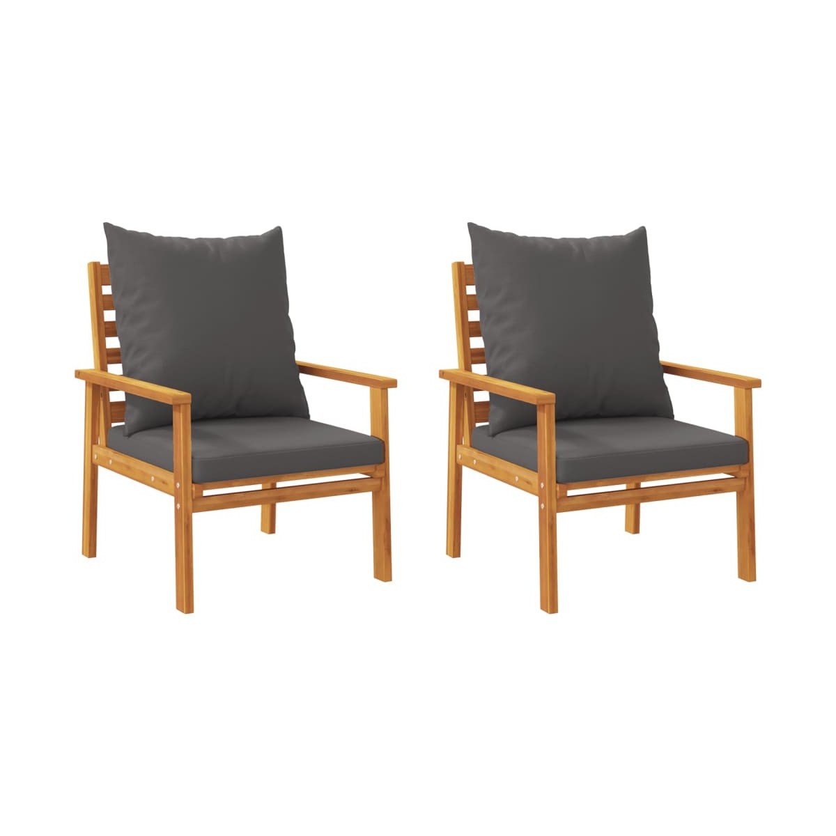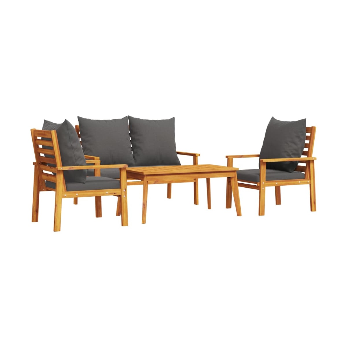 Este conjunto de muebles de jardín de madera tiene un diseño elegante y es una excelente opción para relajarse y disfrutar en el jardín o patio. Madera maciza de acacia: El conjunto de muebles de exterior está hecho de madera maciza de acacia para mayor robustez y estabilidad. La madera maciza de acacia es un bonito material natural. La madera de acacia tiene hermosas vetas que hacen que cada mueble sea único y ligeramente diferente de los demás.Cómoda experiencia de asiento: Con reposabrazos y respaldo, el juego de salón de patio brinda la máxima comodidad. Además, los cojines gruesos y acolchados proporcionan comodidad al asiento.Superficie estable y fácil de limpiar: Esta mesa de jardín tiene una superficie de madera de acacia que es resistente, duradero y fácil de limpiar con un paño húmedo.Diversos usos: L os asientos de jardín son perfectos para cualquier porche delantero, patio, césped, jardín, etc Información útil:Para asegurarte de que tus muebles de exterior se mantengan hermosos, recomendamos protegerlos con una funda impermeable.