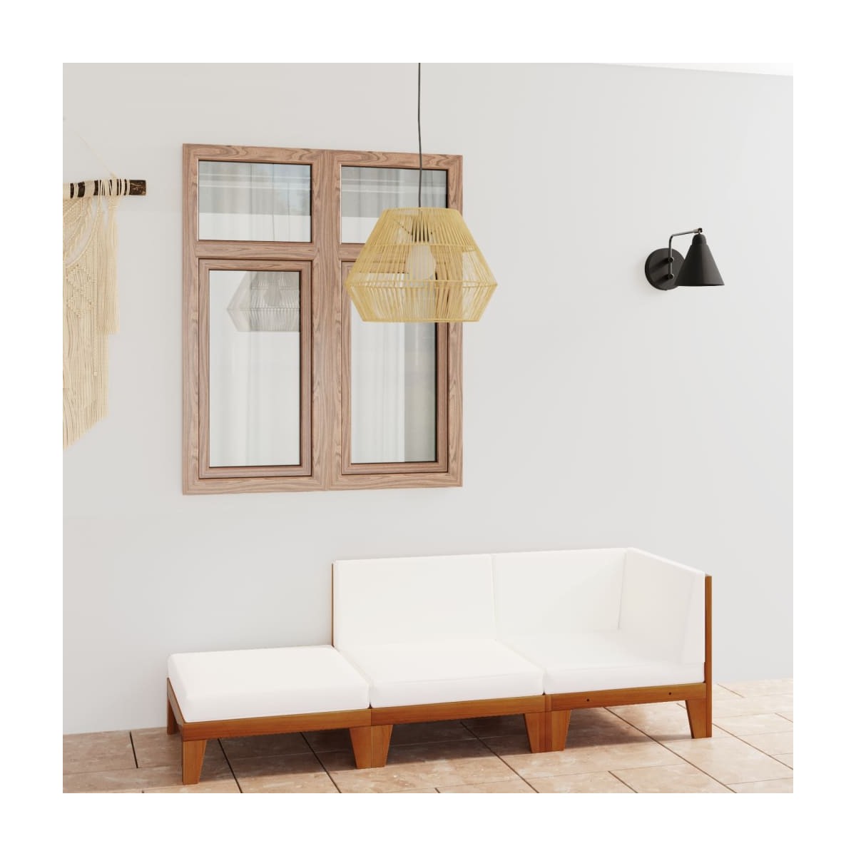 Este juego de salón de jardín combina estilo y funcionalidad y es una opción ideal para relajarte y disfrutar del buen tiempo, echar una siesta o charlar con tu familia o amigos. Hecho de madera de acacia maciza este mobiliario de exterior es fácil de limpiar, resistente y apto para el uso diario. El conjunto tiene una construcción maciza y requiere poco mantenimiento. La mesa es ideal para tener alimentos y bebidas al alcance. Gracias a la tapicería 100% poliéster y al grueso acolchado de los cojines incluidos junto con su suavidad, proporcionan la máxima comodidad. Este conjunto también es liviano y modular, lo que lo hace completamente flexible y fácil de mover para adaptarse a cualquier entorno. ¡Puede combinarlo con otros segmentos modulares para crear sus propias configuraciones de juego de salón de jardín personal! Nota: Para prolongar la vida útil de los muebles de exterior, te recomendamos que los limpies con regularidad y no los dejes al aire libre sin protección innecesariamente.Limpieza: Usa una solución de jabón suave.Almacenamiento: Si es posible, guarda el producto en un lugar fresco y seco en el interior. Si el producto se almacena al aire libre, protégelo con una funda impermeable. Limpia y seca el exceso de agua o nieve de las superficies planas después de una lluvia o nevada. Permite la ventilación para evitar daños relacionados con la humedad.