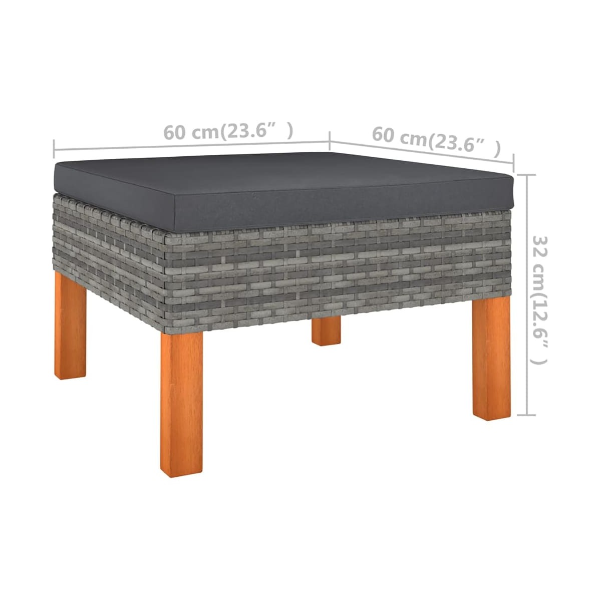Este elegante y cómodo juego de salón de jardín es una opción ideal para relajarse y disfrutar del buen tiempo, echar una siesta o charlar con tu familia o amigos. Con una estructura de acero con recubrimiento en polvo recubierta con ratán PE, el juego de sofás de exterior es resistente a la intemperie y fácil de limpiar. Las patas macizas de madera de eucalipto contribuyen a su robustez y estabilidad. El juego de jardín se entrega con cojines acolchados gruesos para la máxima comodidad. Equipada con cremallera, la funda del cojín es extraíble y lavable. Además, este asiento de jardín se puede mover fácilmente para adaptarse a cualquier entorno con su construcción ligera. Nota: Para prolongar la vida útil de los muebles de exterior, te recomendamos que los limpies con regularidad y no los dejes al aire libre sin protección innecesariamente.Limpieza: Usa una solución de jabón suave.Almacenamiento: Si es posible, guarda el producto en un lugar fresco y seco en el interior. Si el producto se almacena al aire libre, protégelo con una funda impermeable. Limpia y seca el exceso de agua o nieve de las superficies planas después de una lluvia o nevada. Permite la ventilación para evitar daños relacionados con la humedad.