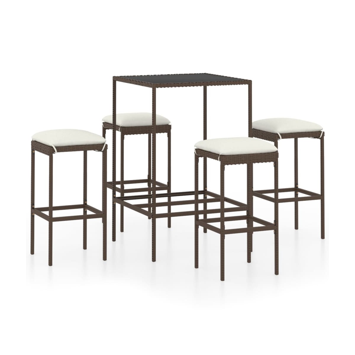 Este elegante conjunto de bar en el jardín proporciona un lugar cómodo y tranquilo para que puedas disfrutar del tiempo con tu familia y amigos. Esta mesa alta cuenta con una estructura de acero con recubrimiento en polvo cubierta con ratán PE resistente al agua, lo que garantiza años de uso en exteriores. Además, el tablero de cristal templado facilita la limpieza. Los taburetes tienen una estructura de acero resistente y están hechos de ratán PE resistente a la intemperie, lo que garantiza estabilidad y son fáciles de mover. El cojín del asiento y el reposapiés incorporado también añaden comodidad adicional al taburete. Nota: Para prolongar la vida de tus muebles de exterior, te recomendamos que los protejas con una funda impermeable.