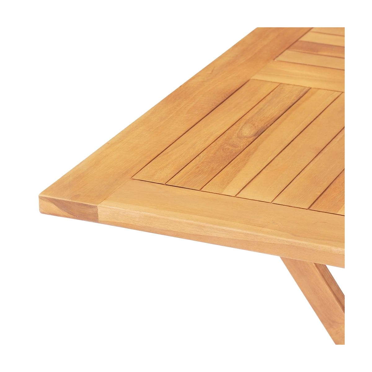 ¡Relájate y disfruta de un delicioso café y comidas con tu familia y amigos con este clásico juego de comedor de jardín de madera! Madera maciza de teca: El juego de comedor está hecho de madera maciza de teca. La madera maciza de teca es un bonito material natural. Ha sido curada, secada al horno y después lijada finamente para darle un aspecto muy suave. La madera de teca es conocida por su excepcional fuerza y resistencia a la intemperie.Función plegable: El juego de comedor de exterior se puede plegar para ahorrar espacio cuando no se use.Cómodo: El respaldo de la silla de comedor para jardín te ofrece un soporte excelente y proporciona una comodidad óptima.Superficie robusta: La resistente superficie de la mesa de comedor es perfecta para colocar comida, bebidas, jarrones, fruteros u otros artículos decorativos.Agujero para la sombrilla: La mesa tiene un orificio para la sombrilla en la superficie, para que puedas colocarla fácilmente y crear un lugar con sombra.Diseño de listones: La silla de comedor para exterior con un diseño de listones tiene un aspecto sencillo y atemporal. Nota:Para asegurarte de que tus muebles de exterior se mantengan hermosos, recomendamos protegerlos con una funda impermeable.