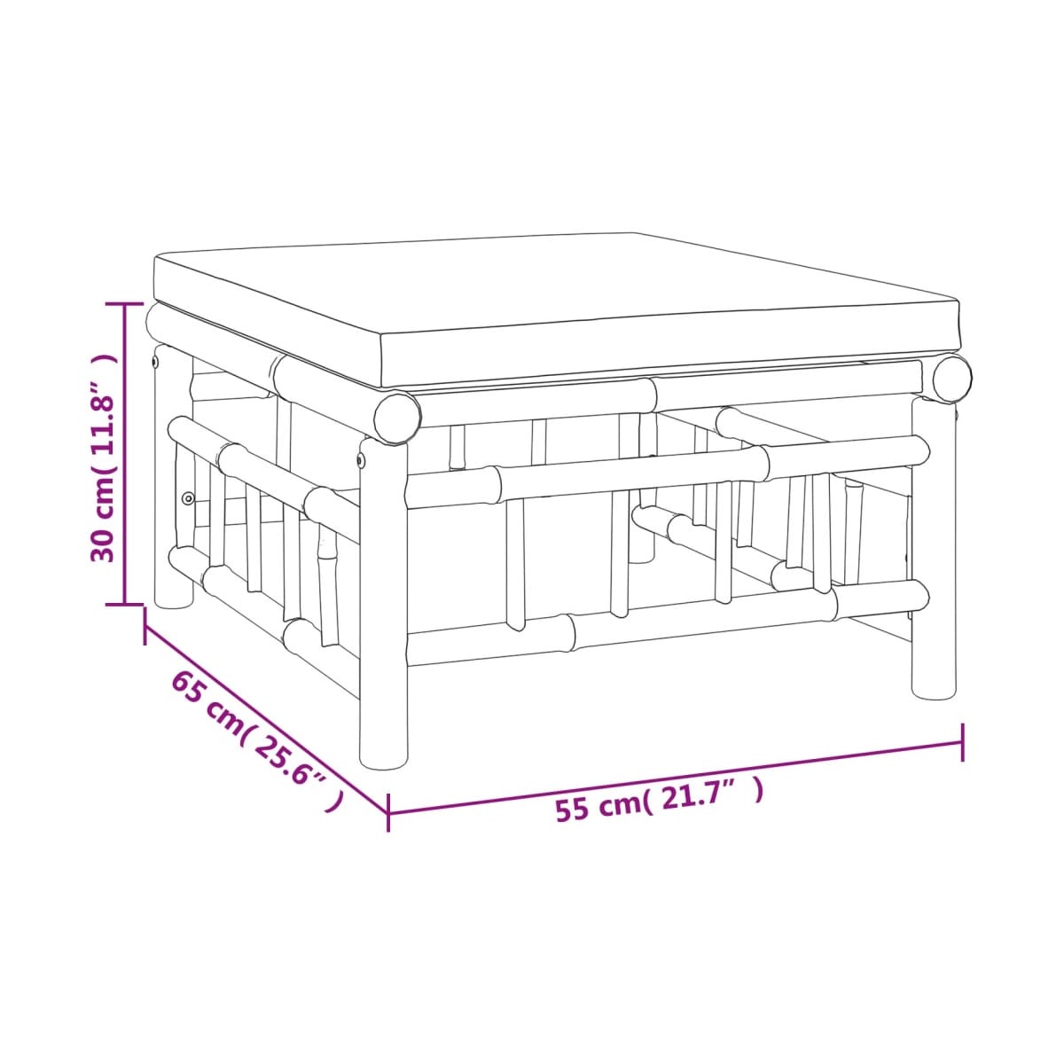 ¡Disfruta de una taza de café o té con un tiempo agradable en el espacio al aire libre de la casa con este elegante juego de muebles de jardín de bambú! Material duradero: El bambú es conocido por su flexibilidad y dureza. Los muebles de bambú son una buena opción si deseas adquirir muebles de exterior resistentes, hechos de materiales naturales.Cómoda experiencia de asiento: El respaldo y el reposabrazos añaden comodidad extra al juego de sofás de jardín. Además, los suaves cojines del asiento y del respaldo brindan comodidad durante tu tiempo sentado.Mesa práctica: La mesa resistente es perfecta para colocar comidas, bebidas y otros artículos decorativos.Diseño modular: El juego de muebles es flexible y fácil de mover, por lo que puede combinarlos con otros segmentos modulares de la tienda web para crear tus propias configuraciones personales de muebles de jardín. Nota:Para asegurarte de que tus muebles de exterior se mantengan hermosos, recomendamos protegerlos con una funda impermeable.Información útil:Para facilitar al máximo el montaje, cada producto se entrega con un manual.