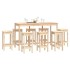 ¡Toma un sorbo de tu vino favorito o disfruta de una buena comida con tu familia y tus amigos alrededor de este hermoso juego de bar de madera! Madera maciza de pino: Este juego de mesa y taburetes altos está hecho de madera maciza de pino. La madera maciza de pino es un bonito material natural. La madera de pino tiene vetas rectas, y los nudos dan al material su distintivo aspecto rústico.Estructura estable: La estructura de madera garantiza su solidez y estabilidad.Superficie resistente: La mesa alta de bar de este juego de muebles tiene una superficie resistente, que es perfecta para colocar bebidas, comida y otros artículos decorativos.Diseño práctico: Estos taburetes de bar no tienen respaldo, para que te puedas sentar cómodamente por cualquier lado del taburete y para que puedas guardarlos debajo de la encimera cuando no se usen. Nota:Cada producto viene con un manual de montaje en la caja para facilitar el montaje.