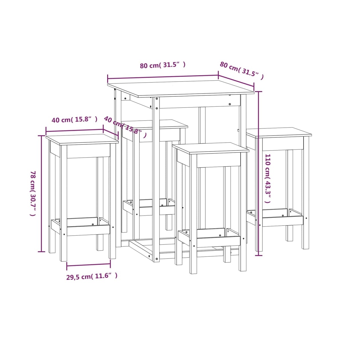 - Dimensiones de la mesa alta de bar: 80 x 80 x 110 cm (ancho x profundo x alto)