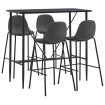 Con un diseño moderno, nuestro conjunto de mesa y sillas altas es perfecto para combinar con casas, jardines, bares, pubs o restaurantes modernos. Su diseño limpio y moderno complementará cualquier decoración de interior. La superficie está hecha de MDF, que es fácil de limpiar. La estructura de acero con recubrimiento en polvo aumenta la estabilidad y la resistencia de la mesa de bar. Las sillas de pub tienen un asiento con diseño ergonómico con respaldo integrado en un aspecto moderno y curvo. Además, son fáciles de montar. Nuestro juego muebles de bar es ideal para disfrutar de unos sorbos de vino en el bar, tomar un aperitivo en la barra de tu cocina o para usar como asientos adicionales cuando tengas invitados. La entrega incluye una mesa de bar y 4 sillas de bar.