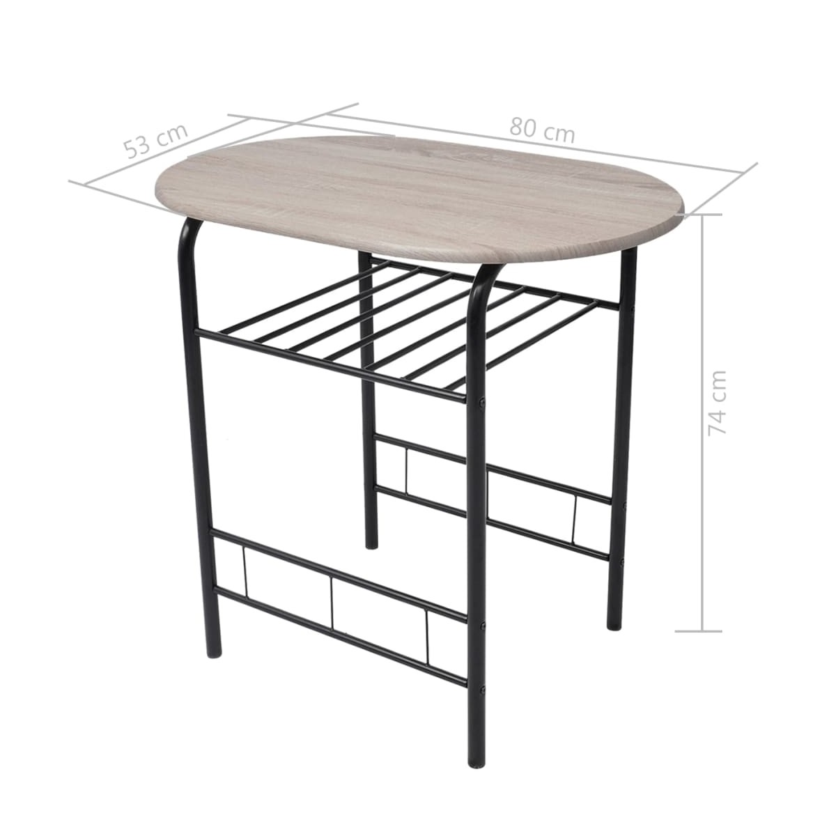 - Dimensiones de la mesa: 80 x 53 x 74 cm (largo x ancho x alto)