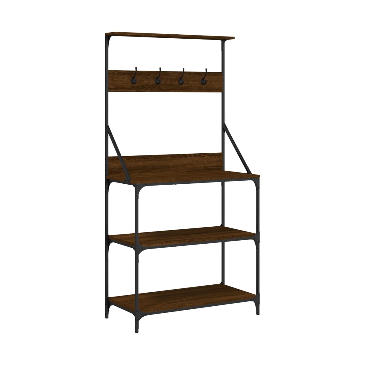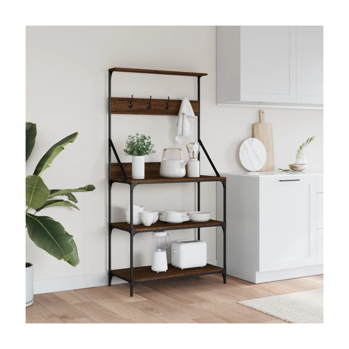 Libera espacio en la encimera con esta estantería de cocina que cuenta con mucho espacio de almacenaje. Material duradero y resistente: La madera de ingeniería tiene una calidad excepcional y una superficie lisa, y también se caracteriza por su fuerza, estabilidad y resistencia a la humedad. La estructura metálica del almacenamiento de cocina garantiza su solidez y estabilidad.Amplio espacio de almacenaje: Con 1 estante superior para tarros de especias y 3 grandes estantes inferiores para utensilios de cocina, el estante de almacenaje para cocina ofrece un amplio espacio de almacenaje para que la cocina esté más organizada.Ganchos prácticos: La estantería para microondas viene con 4 ganchos. Así, podrás colgar libremente los objetos de uso frecuente y los utensilios de repostería, como rasquetas de masa, pinceles, batidores y similares, según tus necesidades y tenerlos siempre a mano.Patas ajustables: Los patas ajustables con almohadillas de plástico mantienen el soporte de almacenaje de cocina equilibrado en suelos irregulares y aumentan la estabilidad. Advertencia:Para evitar que vuelque, este producto debe usarse con el dispositivo de fijación a la pared incluido. Información útil:Los tornillos y los tacos para el interior de la pared no están incluidos. Recomendamos encontrar y utilizar tornillos y tacos adecuados específicamente para las paredes. Si no estás seguro, puedes consultar con un profesional. Lee y sigue cada paso de las instrucciones.