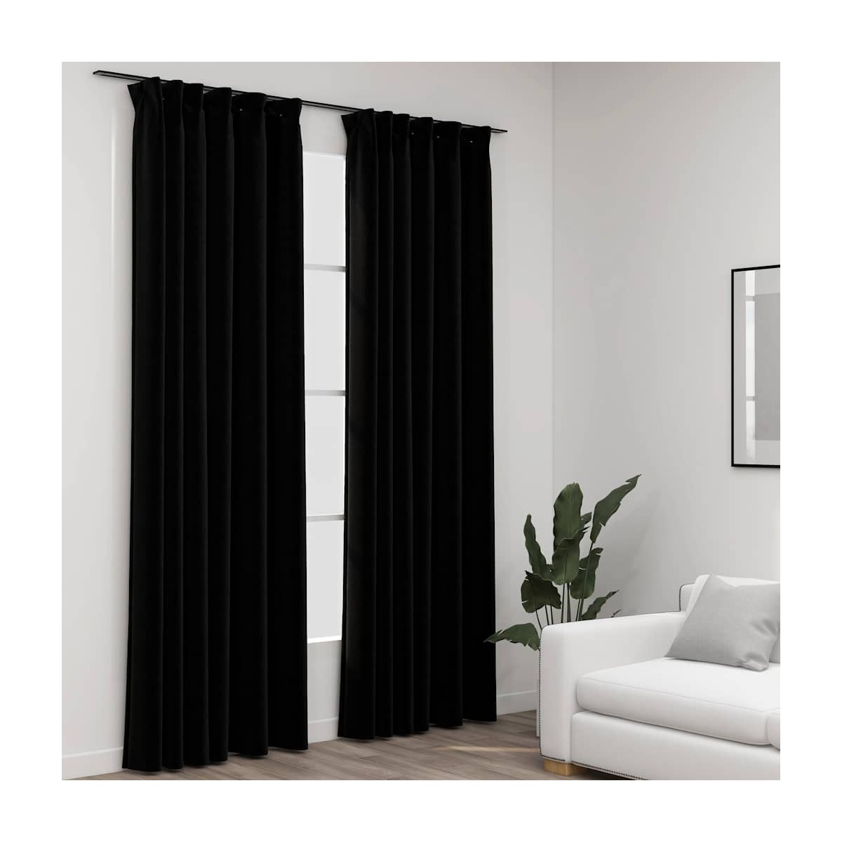 Cortinas opacas con ganchos look de lino 2 pzas negro 140x225cm