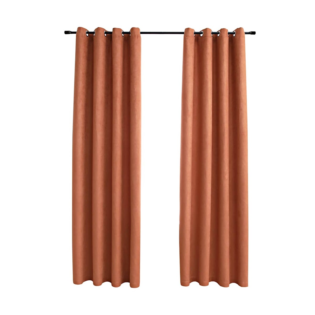 Cortinas opacas y aros de metal 2 piezas color óxido 140x245 cm