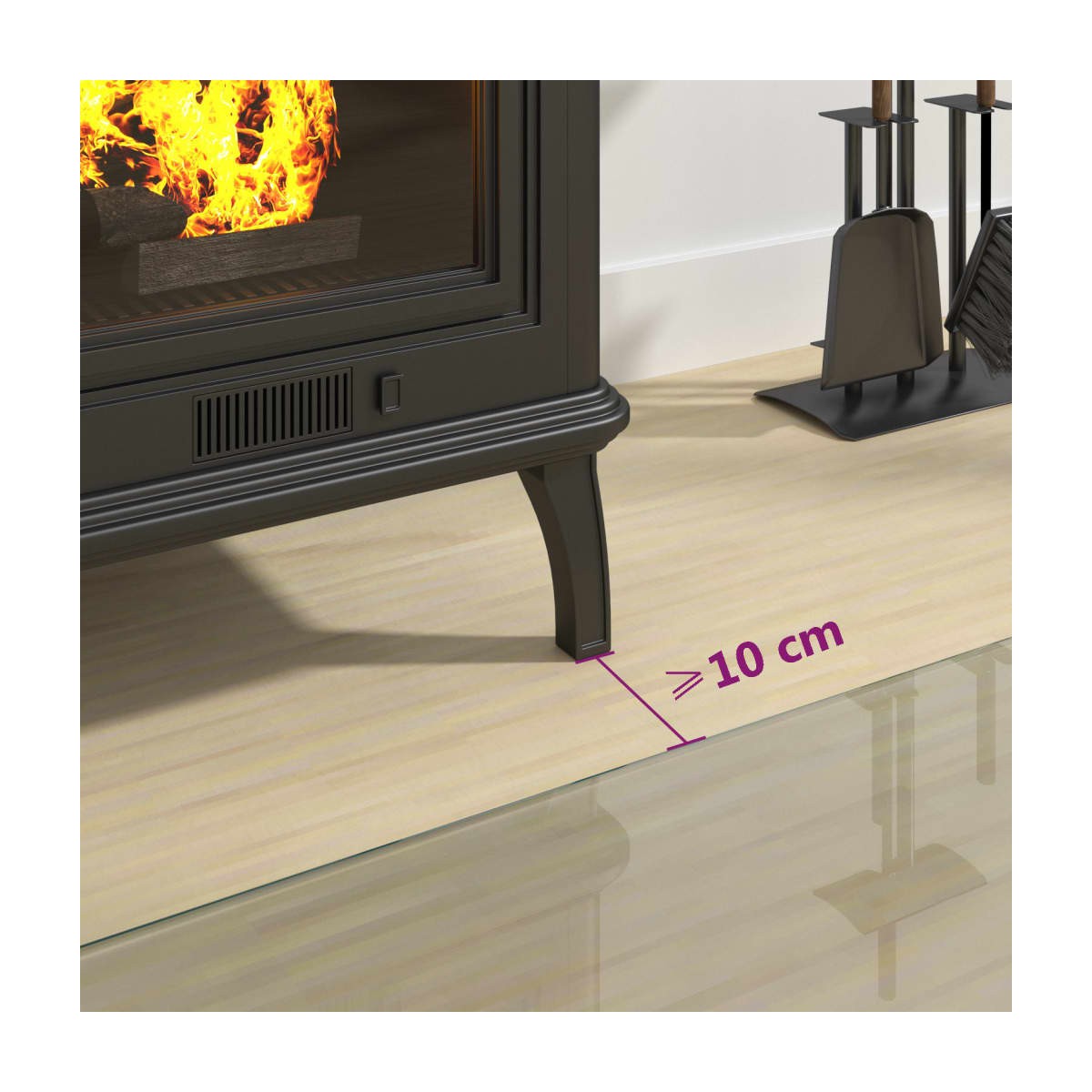 Esta placa de vidrio para chimenea se puede utilizar como revestimiento de suelo para proteger la superficie de un suelo cuando el fuego está encendido. Material de primera calidad: Hecho de vidrio templado, este panel de cristal tiene una excelente resistencia a las temperaturas altas. Además, la placa base de vidrio soporta hasta 250 kg.Borde pulido biselado: El panel de vidrio con un corte de faceta de 8 mm tiene una hermosa transición líquida al suelo con bordes lijados y pulidos. El efecto visual del suelo se mantiene por la transparencia del vidrio facetado.Fácil de usar: En solo unos minutos puedes colocar fácilmente la placa de suelo de la chimenea en tu hogar para proteger el parquet o el laminado de daños, suciedad y quemaduras de manera fiable. Nota:La temperatura debe ser inferior a 200℃ cuando está en uso.Mantenga una distancia segura de al menos 10 cm de la fuente de calor.